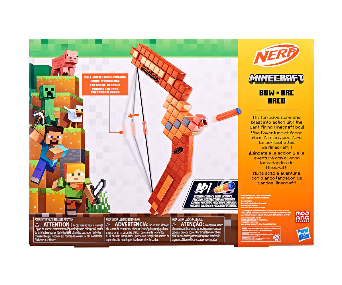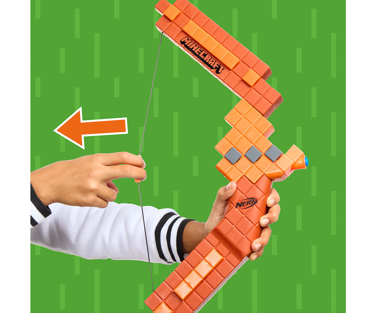 - Този лък, изстрелващ стрели, е вдъхновен от лъка в популярната видео игра Minecraft. Официално лицензиран продукт;