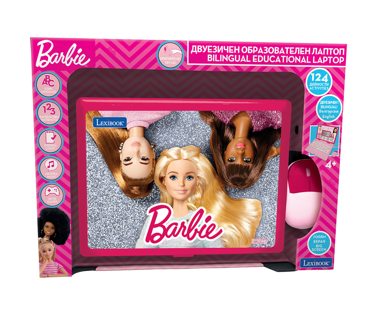 - Двуезичен образователен компютър Barbie с 124 активности (62 на български и 62 на английски), за забавно учене заедно с Барби и нейните приятели!