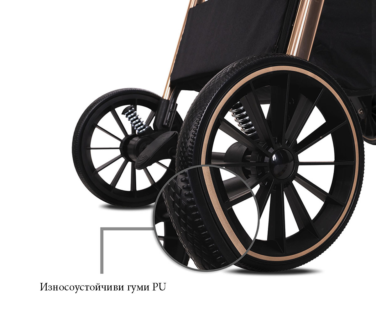 - Износоустойчиви гуми PU;