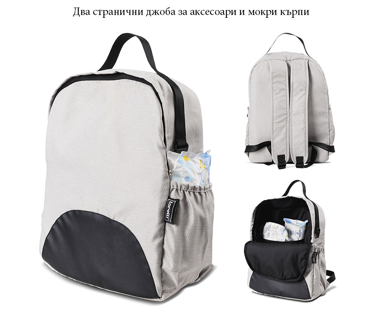 - Два странични джоба за аксесоари и мокри кърпи;