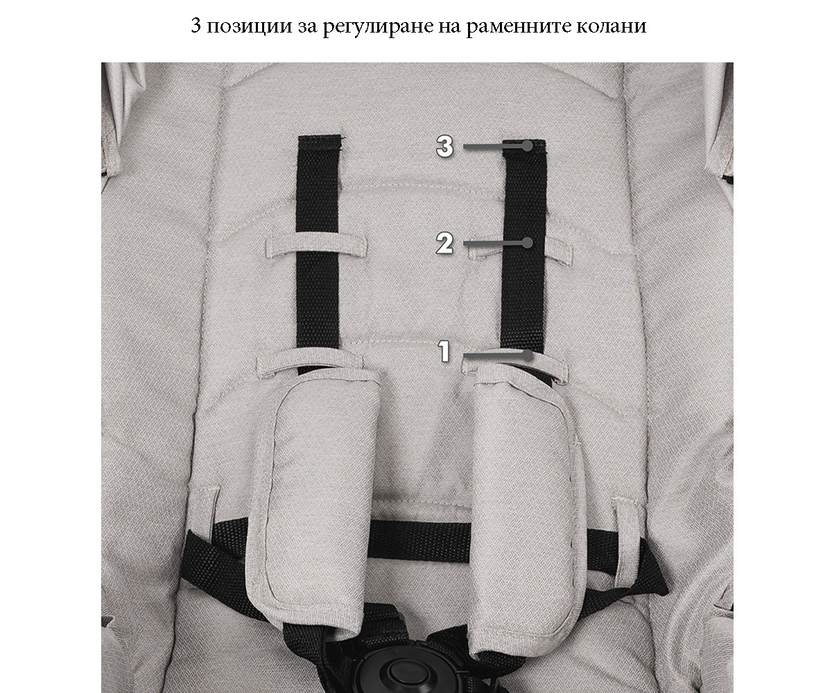 - 3 позиции за регулиране на раменните колани;