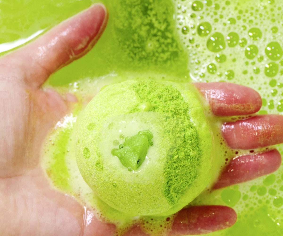 Забавно къпане с изненада – Какъв цвят ще бъде твоята бомбичка за вана? Тя може да е синя, зелена или оранжева и ще оцвети водата в красиви, наситени нюанси. Освен това крие една от шест възможни фигурки на динозаври, готова за откриване.