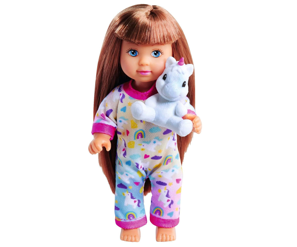 Кукла Еви Лав - Пижама и еднорог, с кестенява коса и розова пижама