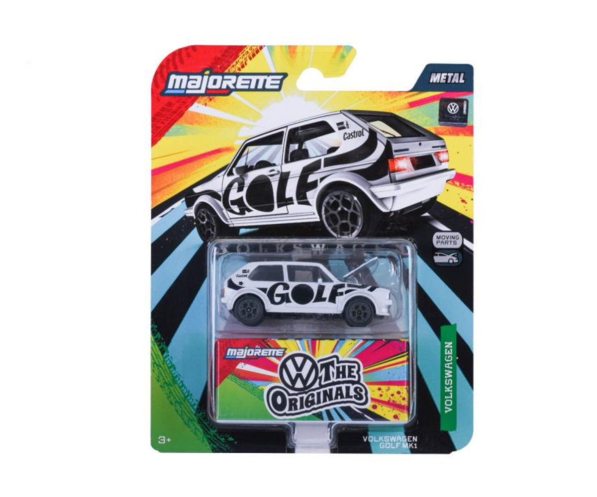 Тази Volkswagen колекция не е за обикновени гаражи! С ярки хипи мотиви, шахматни десени или сърф дъска - всяка от 6-те колички носи максимален стил и настроение в играта. От емблематичния Volkswagen Beetle до легендарния Volkswagen Bulli - класически модели, съчетани със смели дизайни, които впечатляват както децата, така и колекционерите. Официално лицензирани модели Volkswagen, изработени от здрав метал, със свободно движение и окачване, както и отварящи се елементи. Гумените гуми осигуряват добро сцепление, а цветните дизайни създават отлично настроение. Оригинални. Метални. Наистина впечатляващи! Majorette е френска марка с дългогодишна традиция от 1964 г., съчетаваща забавление и страст към колекционирането. С оригинални лицензирани модели на известни автомобилни марки, висококачествена изработка и страхотен дизайн - от спортни коли и monster trucks до строителни машини и паркинг комплекти. Подходящи за деца над 3 години и колекционери от всички възрасти - за всеки, който обича автомобили!