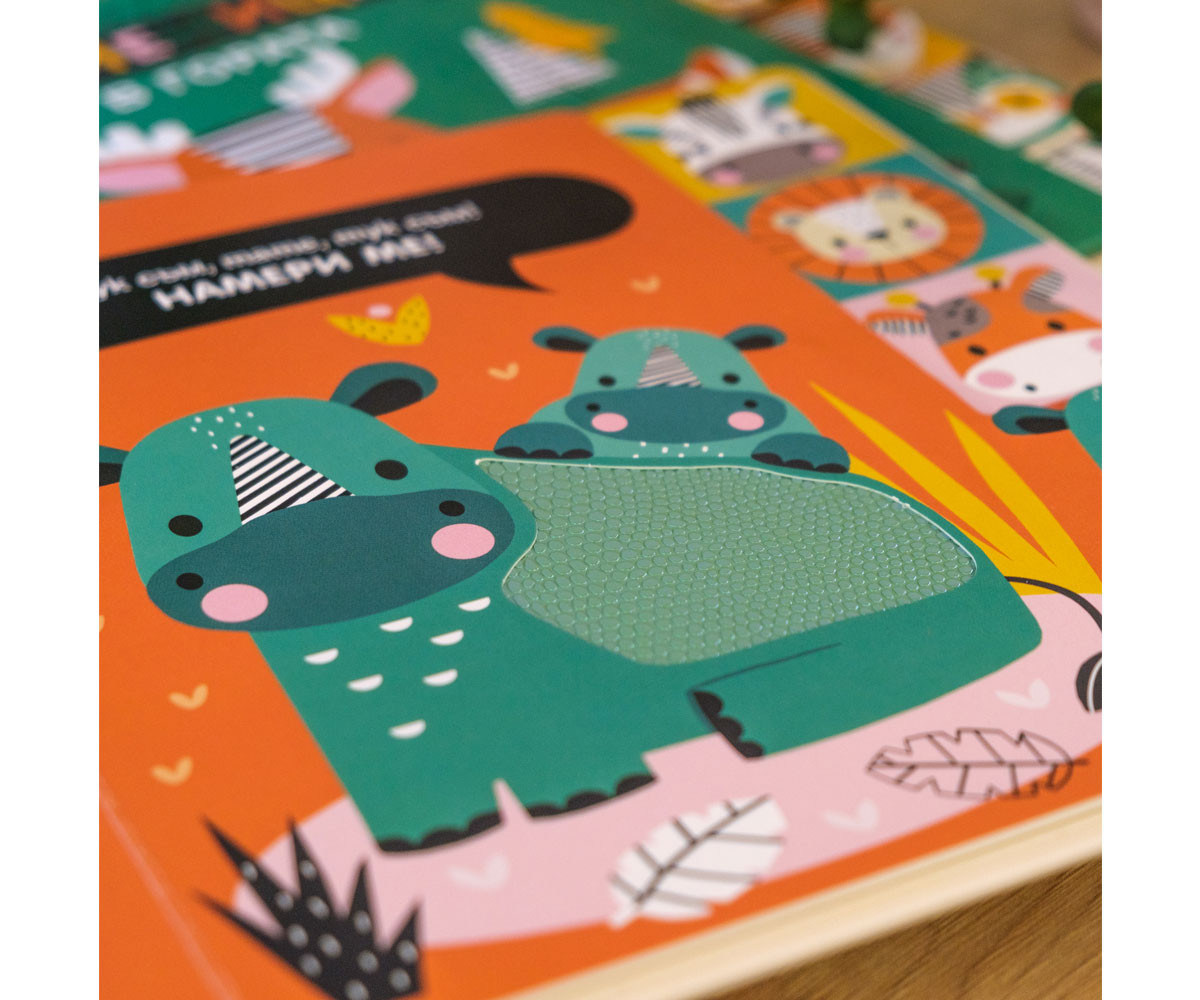 Хайде да поиграем на криеница с животните в саваната и техните малки! С приятните на допир текстилни елементи и симпатичните животинки това е идеалната книжка за най-малките любопитковци.