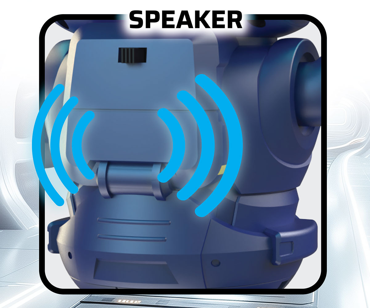 - Реагира на движение и допир с разнообразни звукoви и светлинни ефекти;