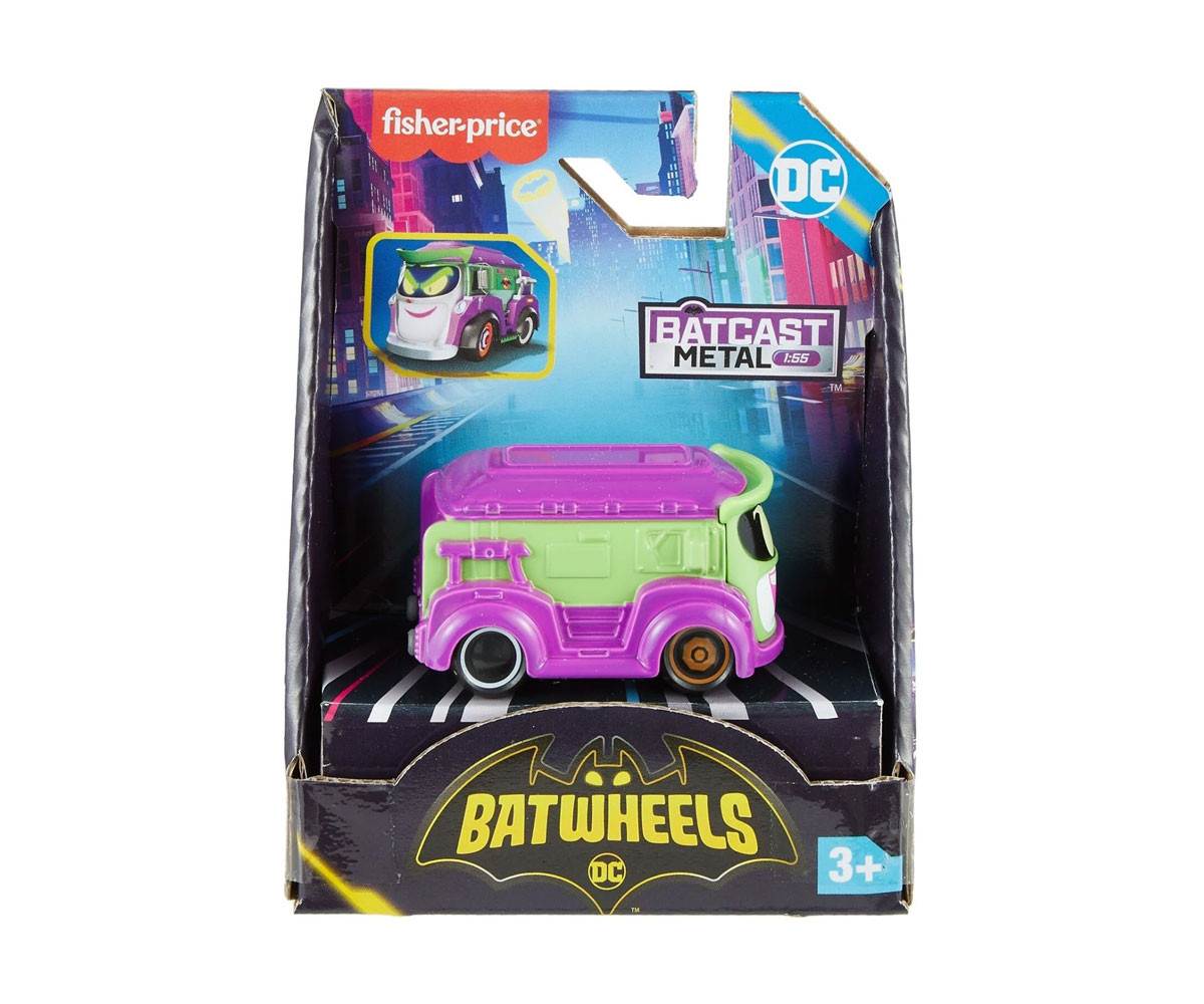 Децата в предучилищна възраст могат да участват във вълнуващи приключения за борба с престъпността, точно като в анимационния филм, с тази колекция от ляти коли Batwheels™ от Fisher-Price®. Всяко превозно средство в мащаб 1:55 има автентичен стил на героите Batwheels™, отляти под налягане материали Batcast Metal™ и истински въртящи се колела, така че младите бойци с престъпност да могат да изпратят любимите си DC превозни средства да се отзоват на помощ! Децата могат да ги съберат всички. (Продават се отделно в зависимост от наличността.)
