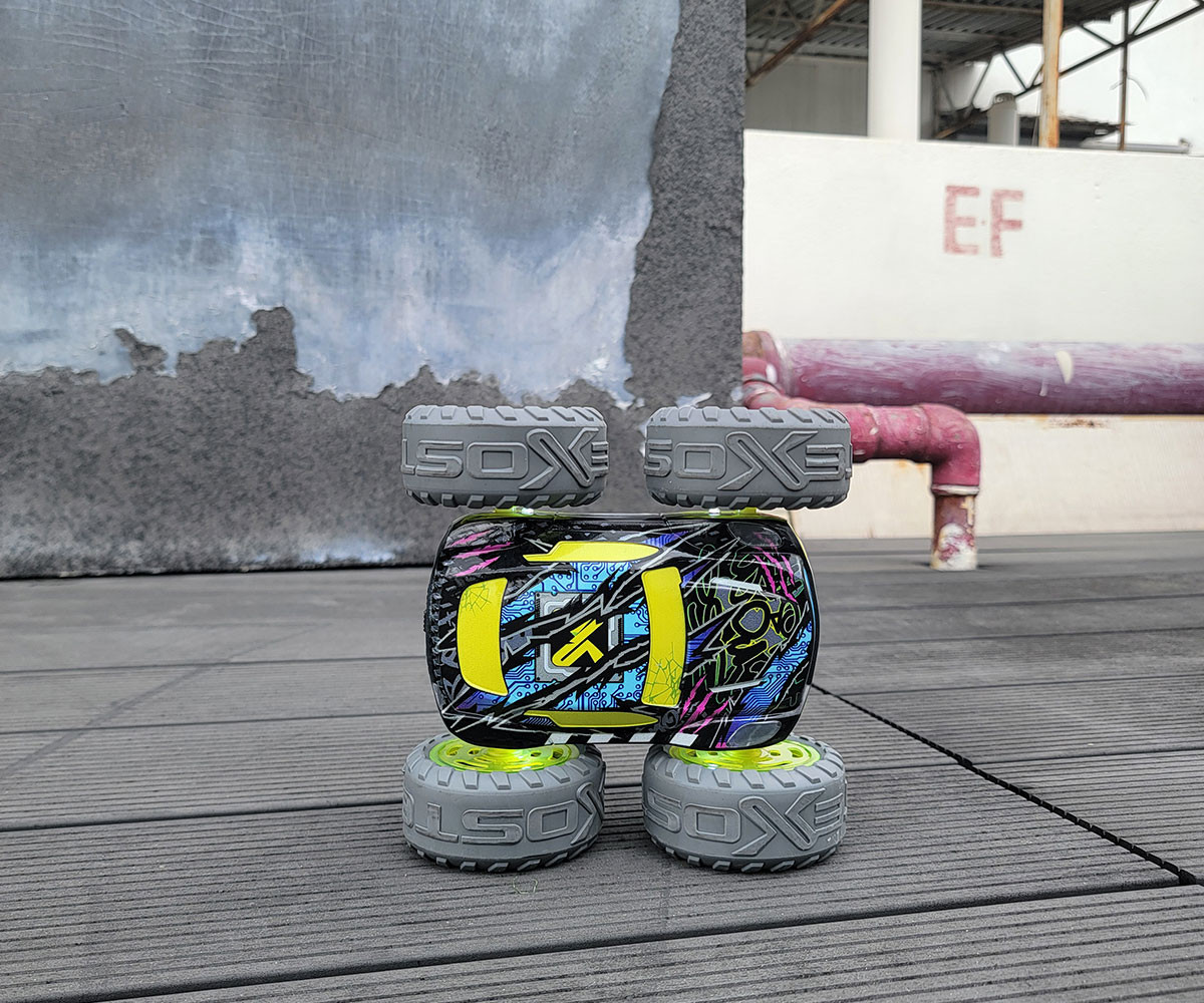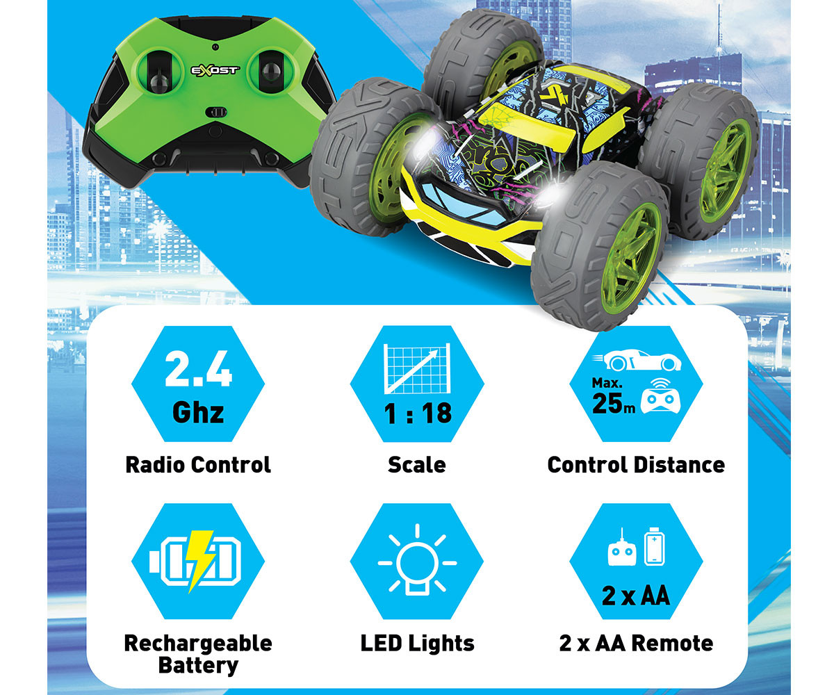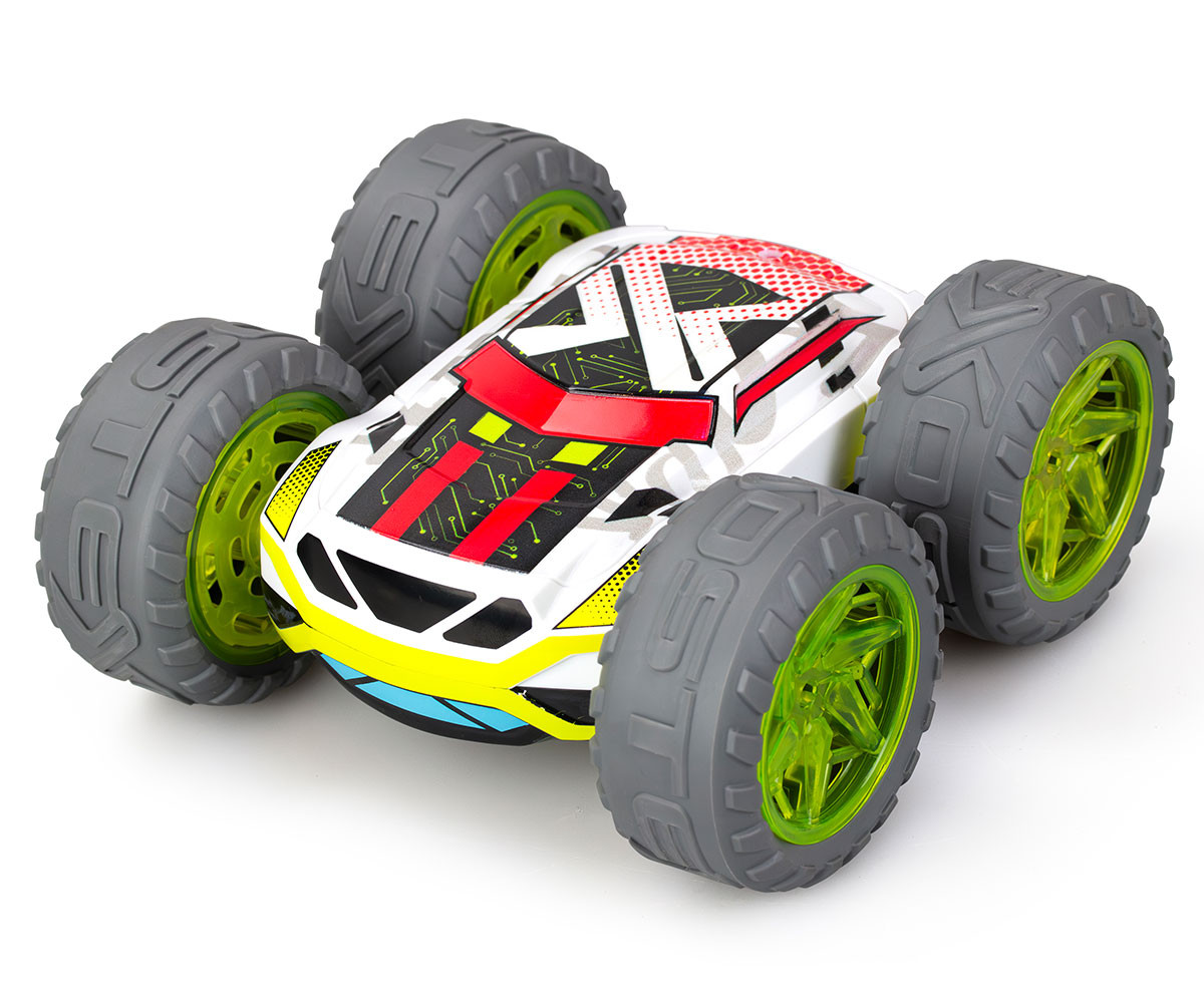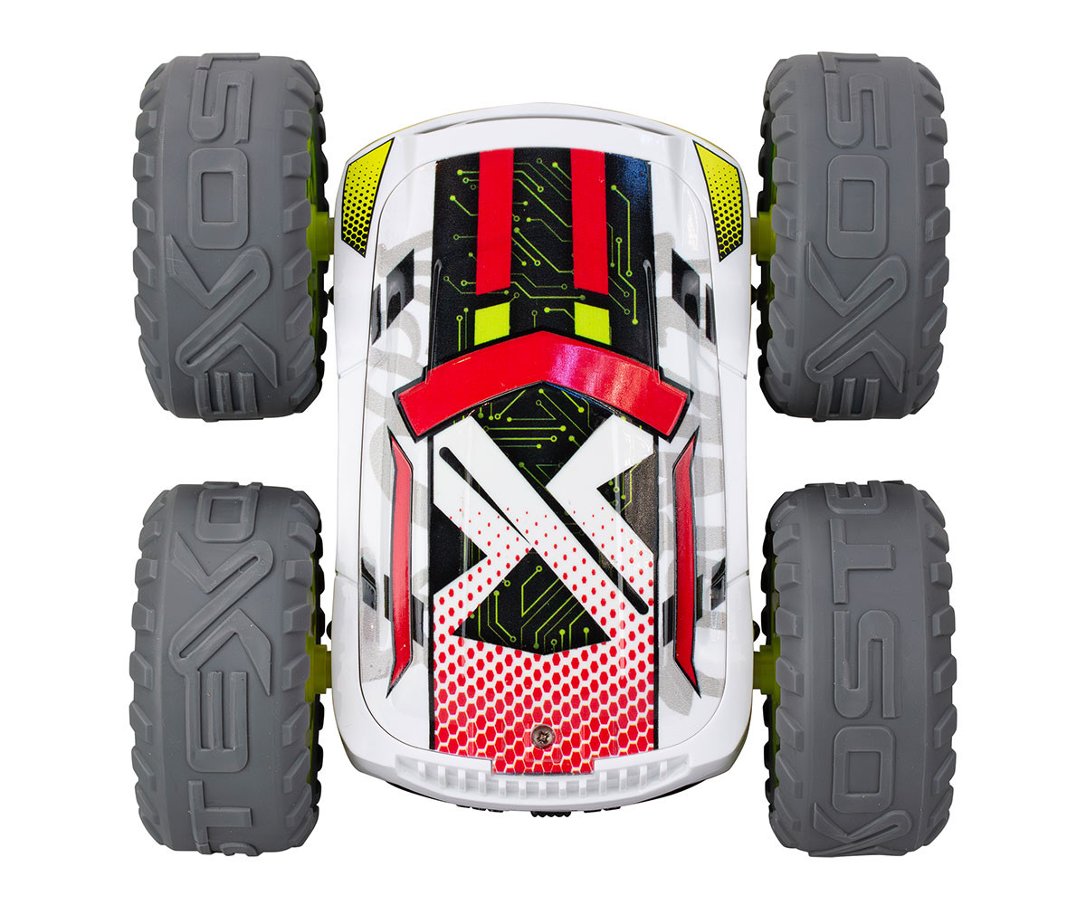 360° CROSS FLASH пристига със светлинна буря! Със зашеметяващи светлинни ефекти на четирите колела и предни фарове, 360 CROSS FLASH може да прави преобръщания и каскади със стил! Превозното средство е двустранно, с уникален EXOST градски дизайн от всяка страна – достатъчно, за да изразиш двойната си EXOST нагласа. 360° CROSS FLASH е оборудвано с презареждаща се батерия, която се зарежда удобно и лесно.