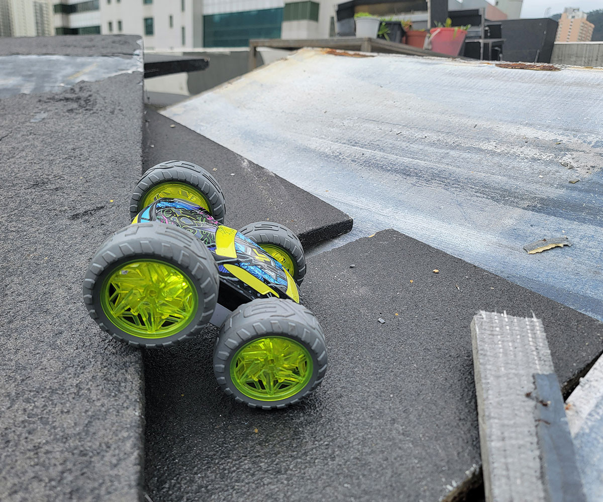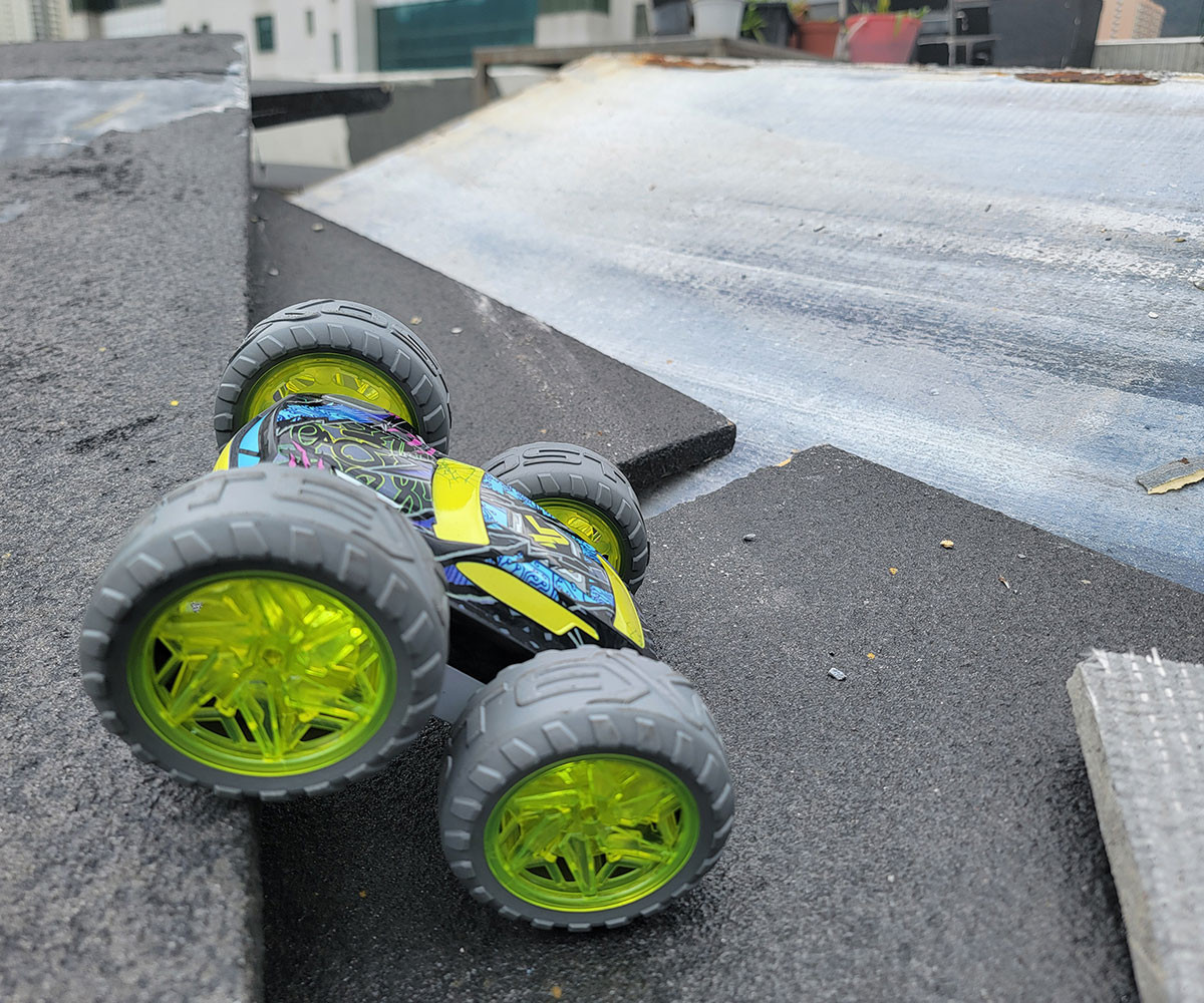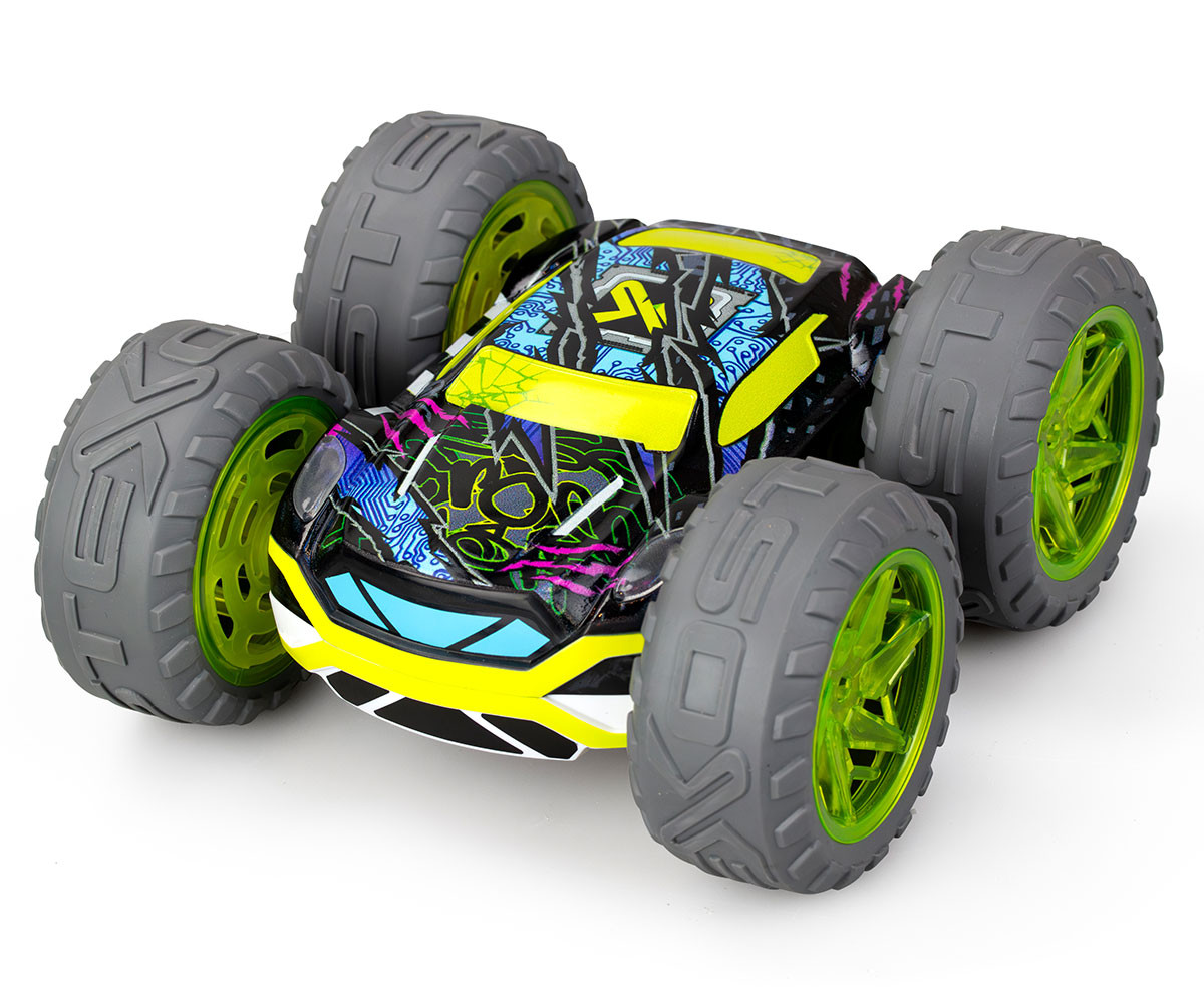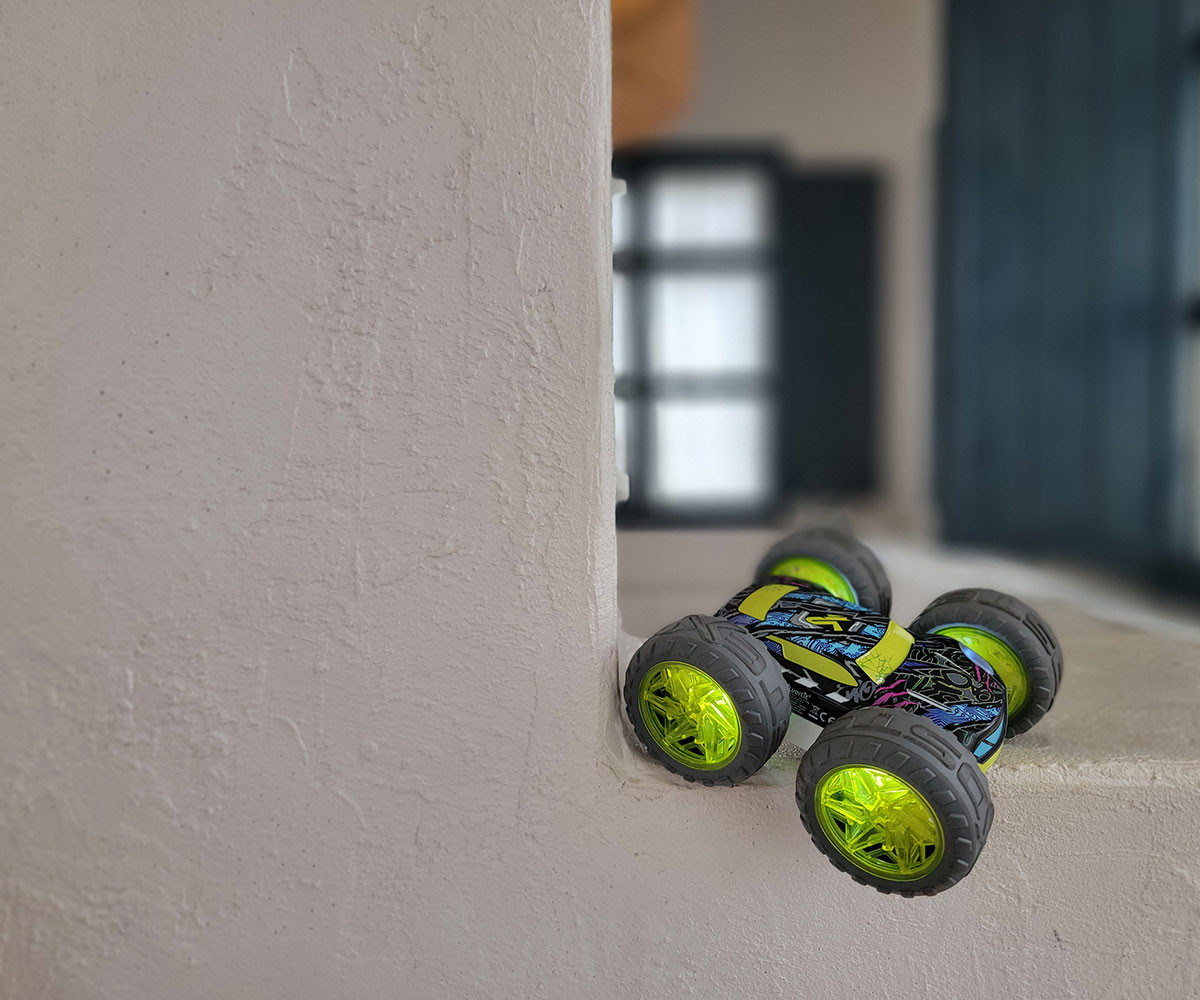 360° CROSS FLASH пристига със светлинна буря! Със зашеметяващи светлинни ефекти на четирите колела и предни фарове, 360 CROSS FLASH може да прави преобръщания и каскади със стил! Превозното средство е двустранно, с уникален EXOST градски дизайн от всяка страна – достатъчно, за да изразиш двойната си EXOST нагласа. 360° CROSS FLASH е оборудвано с презареждаща се батерия, която се зарежда удобно и лесно.