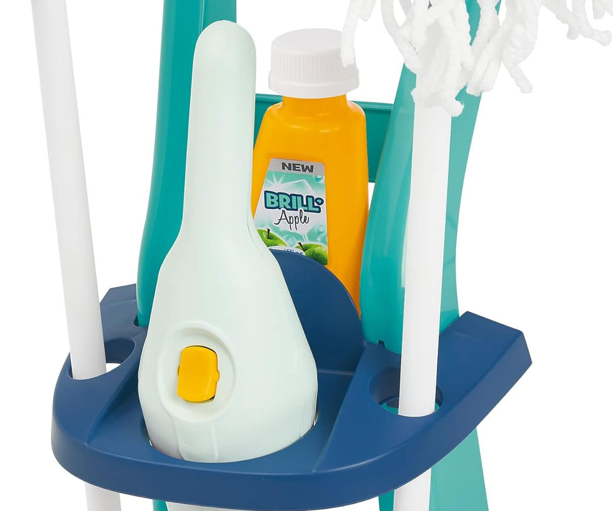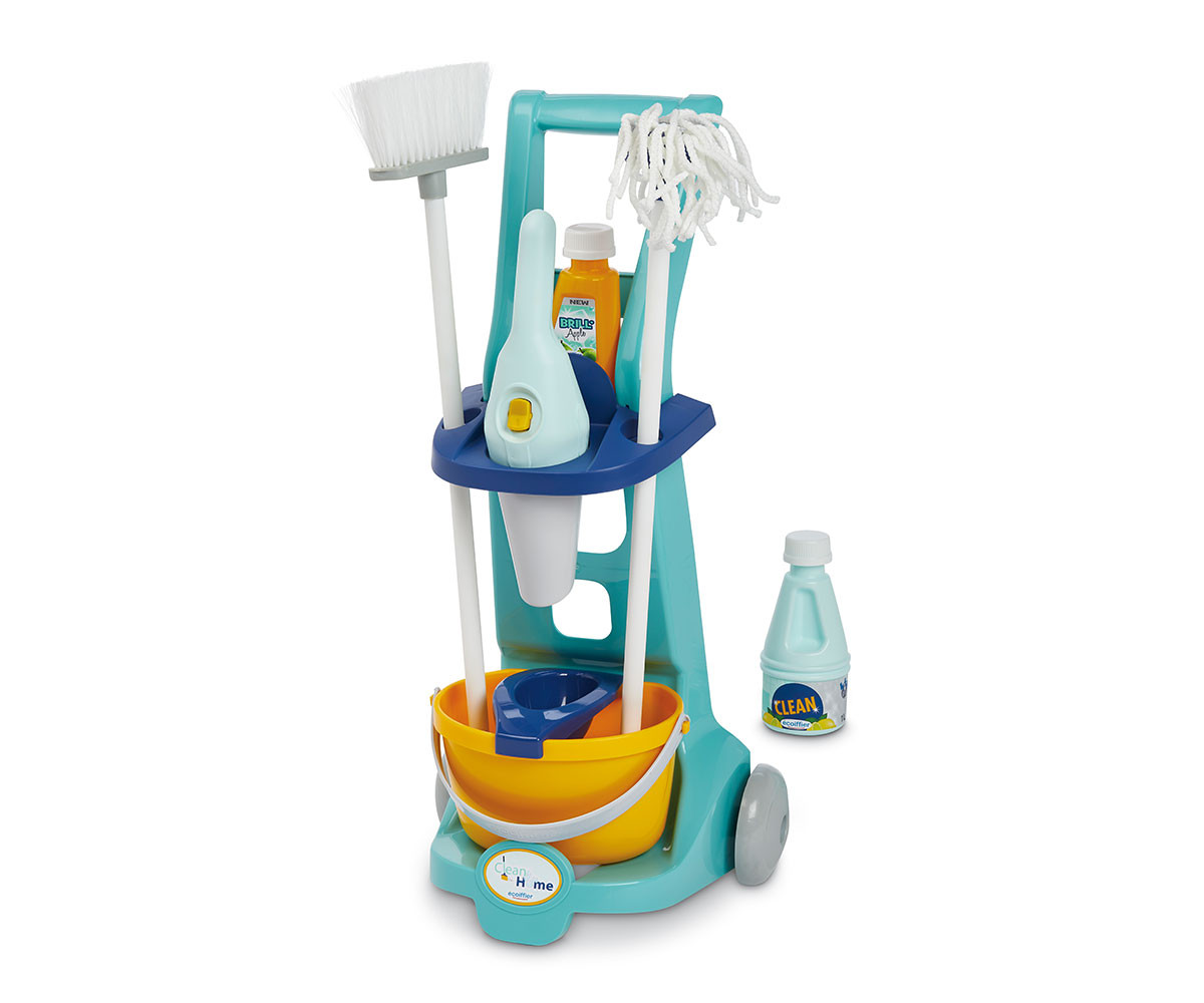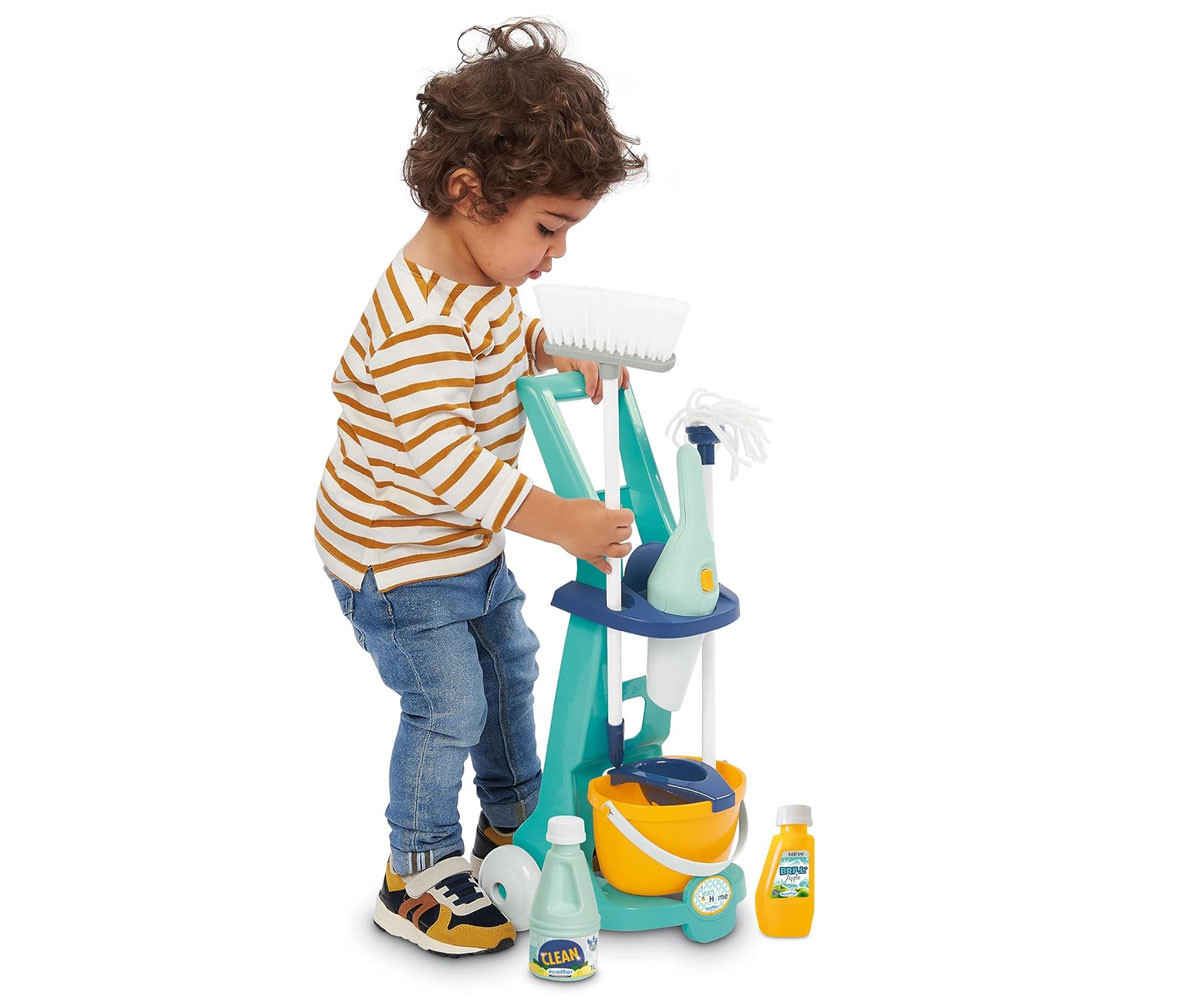 Детски комплект за почистване CleanHome с количка и 8 аксесоара – реалистична игра за малки помощници. Почистването се превръща в забавление! С този пълен комплект от серията CleanHome, вашето дете ще се потопи в света на домакинските задължения по напълно безопасен и забавен начин. Идеален за ролеви игри и развитие на умения чрез имитиране на възрастните.