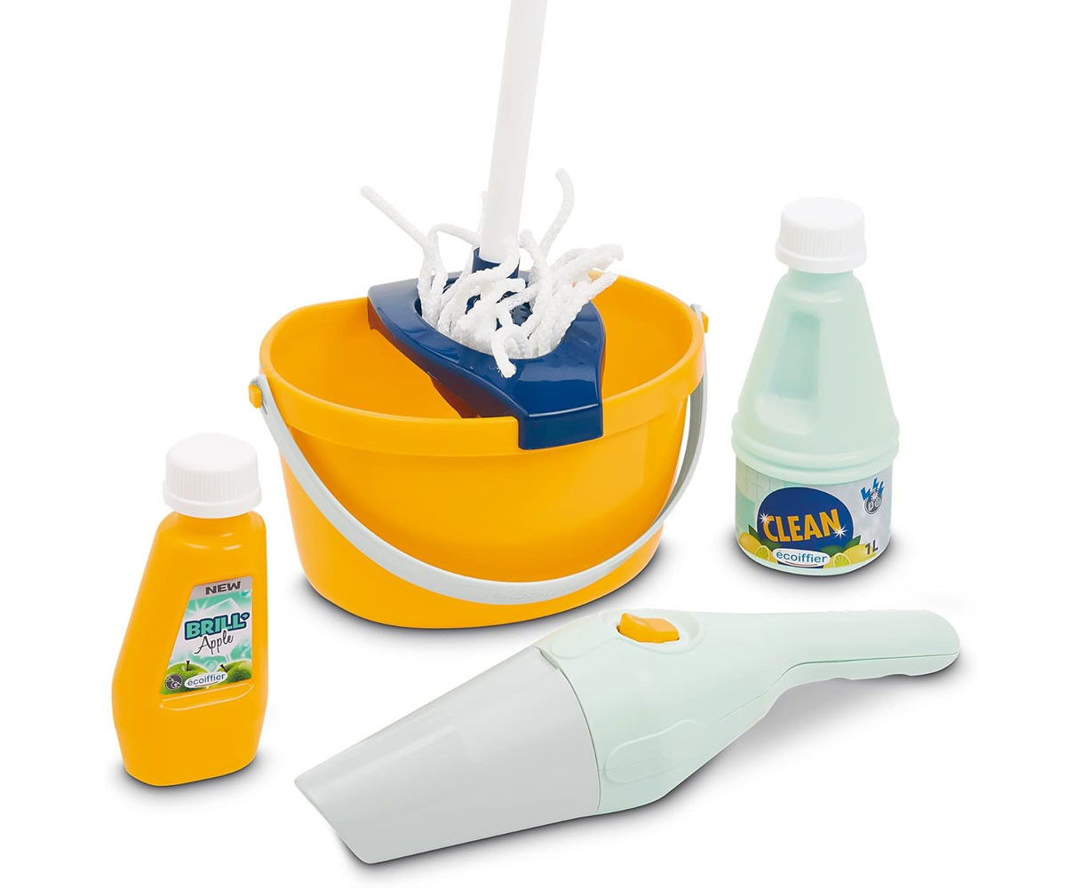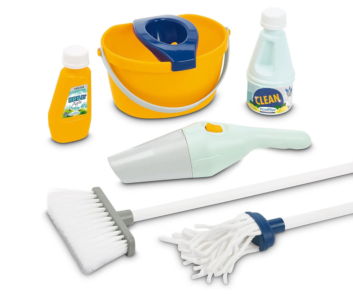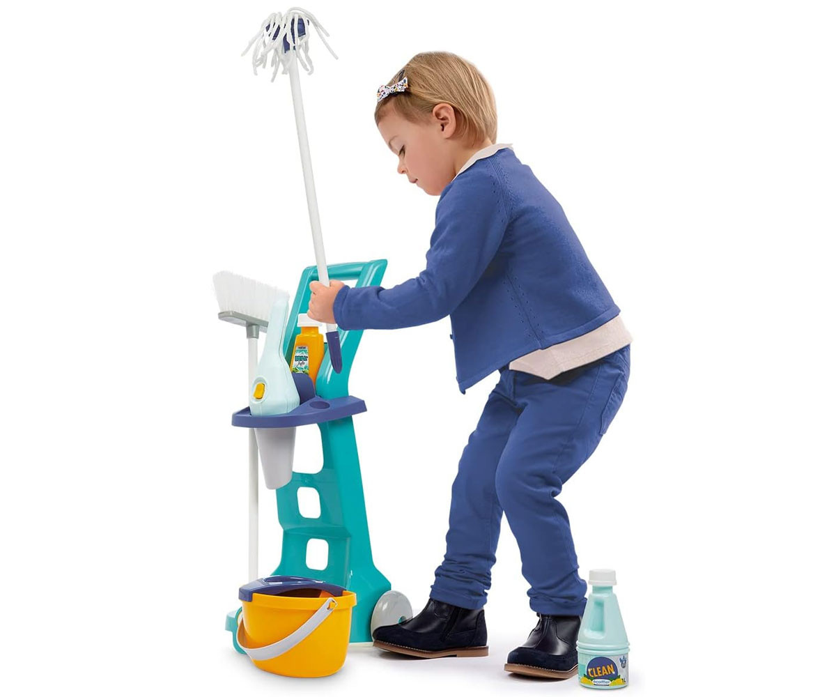 Детски комплект за почистване CleanHome с количка и 8 аксесоара – реалистична игра за малки помощници. Почистването се превръща в забавление! С този пълен комплект от серията CleanHome, вашето дете ще се потопи в света на домакинските задължения по напълно безопасен и забавен начин. Идеален за ролеви игри и развитие на умения чрез имитиране на възрастните.