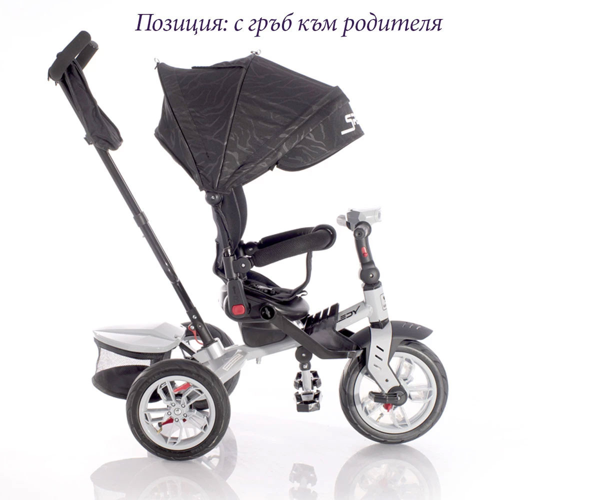 - Позиция: родителски контрол; Дъждобран за триколка (не е включен, можете да го закупите тук);