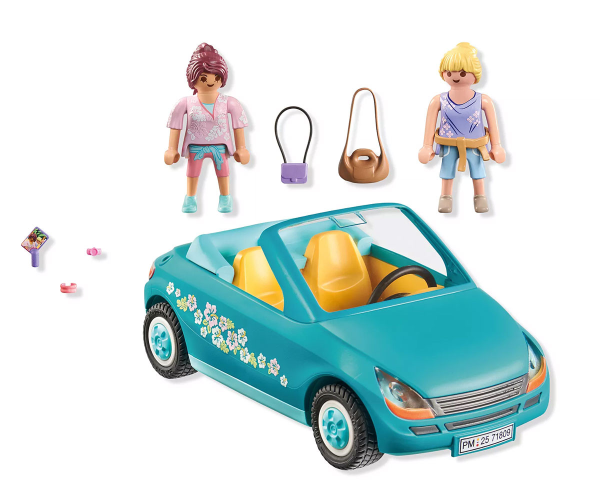 Момичешко пътешествие! Две приятелки се наслаждават на вятъра, който развява косите им по време на разходка с кабриото. Изживейте тръпката от едно спонтанно момичешко пътуване със стилното кабрио на PLAYMOBIL. Две най-добри приятелки поемат по открития път, наслаждавайки се на всеки изпълнен със забавление момент. Елегантното кабрио предлага пространство за приключения, а модерните аксесоари като смартфон, чанти през рамо и ръчен часовник придават модерен облик. Перфектен за крайбрежни разходки и бягства сред природата, този комплект вдъхновява истории и забавления.