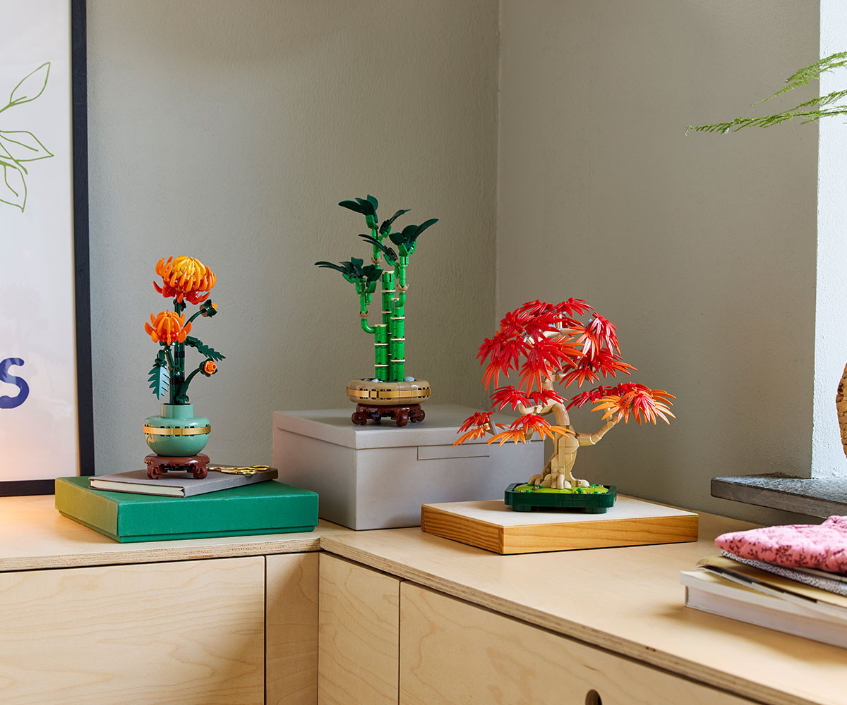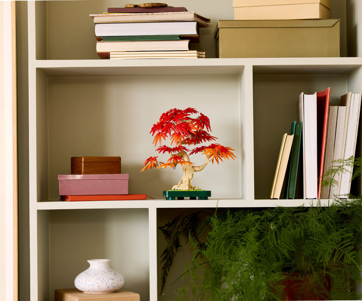 - Дърво бонзай LEGO® – отпуснете се със строителния комплект LEGO Botanicals Бонзай Червен японски клен за възрастни с много автентични детайли;