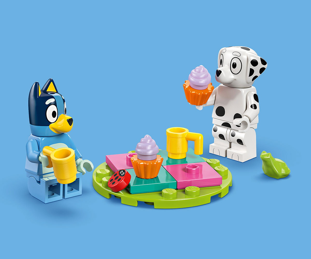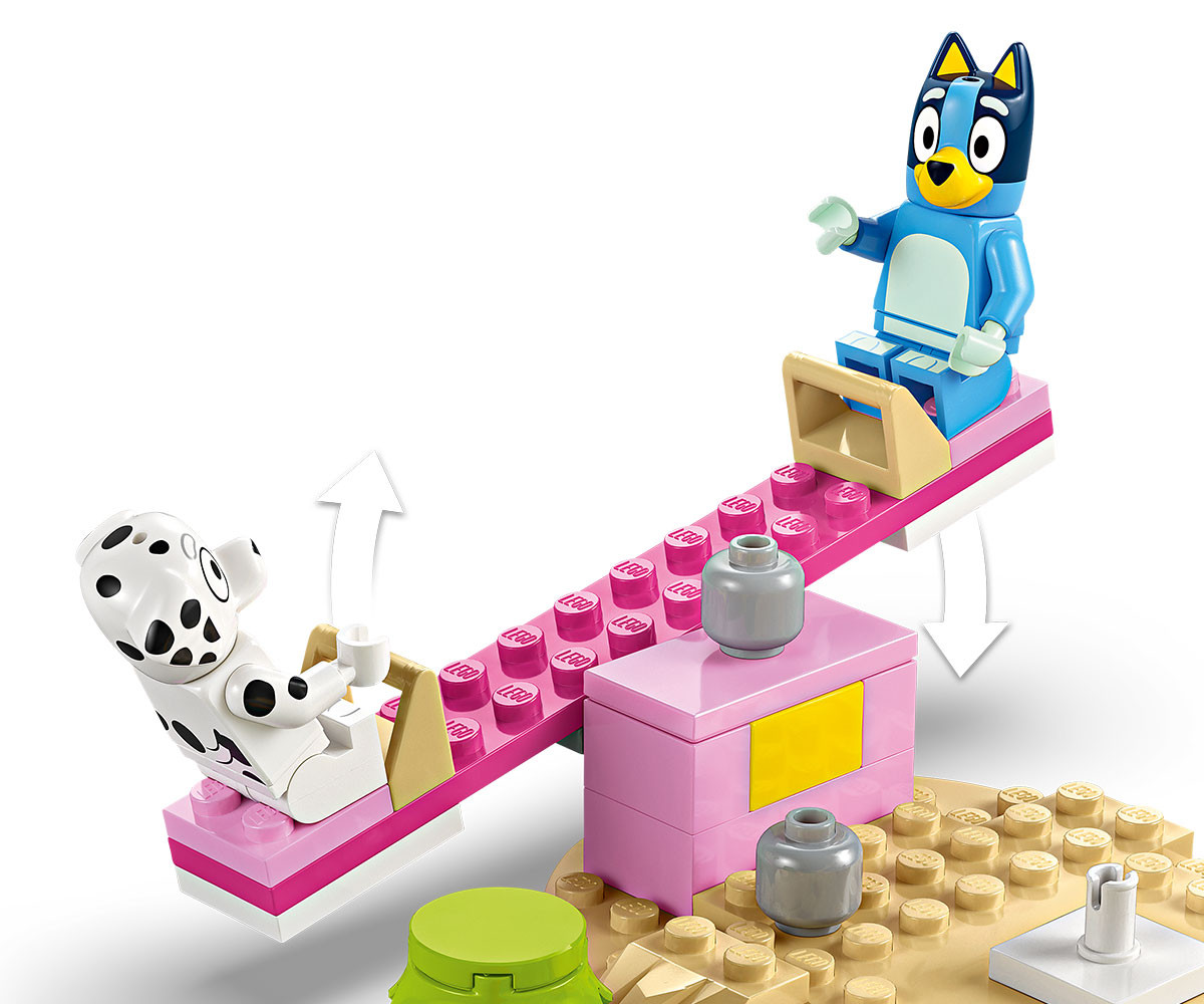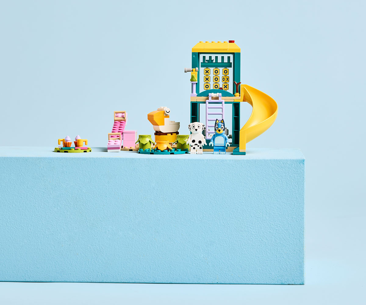 - Интерактивна играчка за деца над 4 години – феновете на ТВ сериала Блуи се присъединяват към минифигурите на Блуи и Клои на площадката във весели цветове, където има люлка, пързалка, зона за катерене и други;