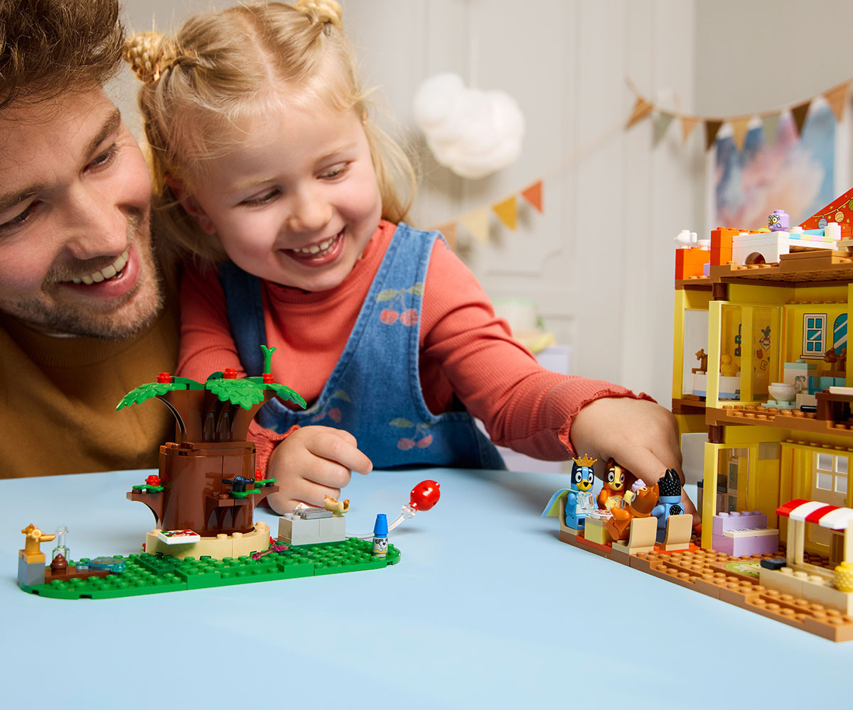 - Комплект за игра с къщата на Блуи – децата могат да пресъздадат забавлението в къщата от ТВ сериала Блуи със строителния комплект „Семейната къща на Блуи“, създаден специално за момчета и момичета на възраст над 4 години;