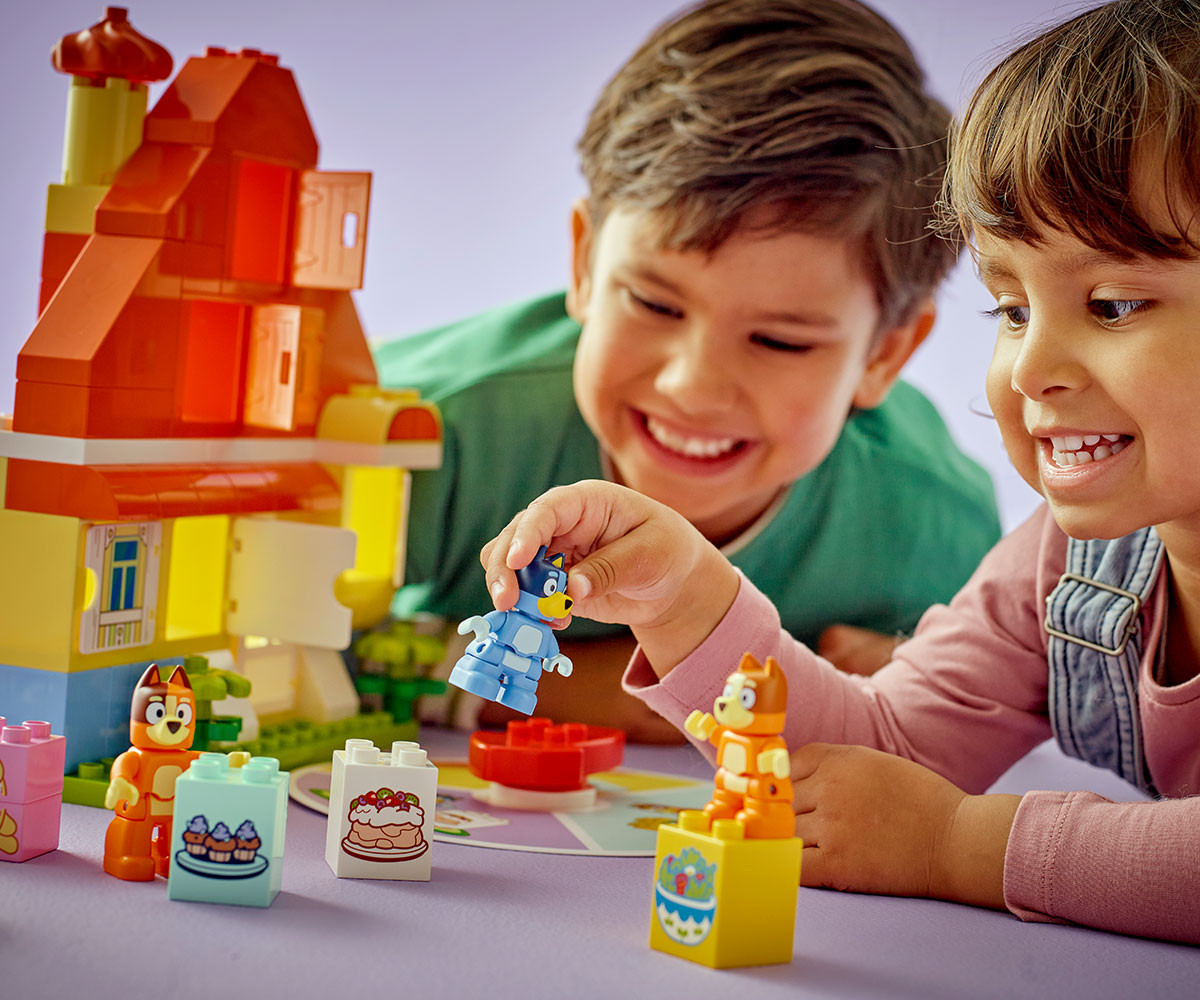 - Увеличете семейното забавление с Блуи – приключенските играчки LEGO® DUPLO® Bluey вдъхновяват разбираема творческа игра за деца в предучилищна възраст и подкрепят важни етапи от израстването, които родителите ще искат да споделят;
