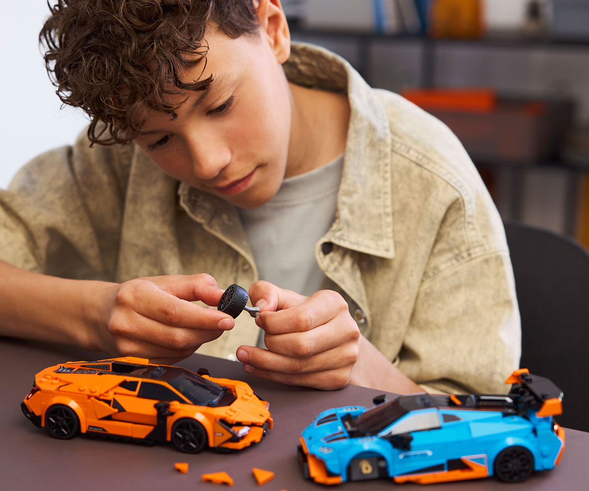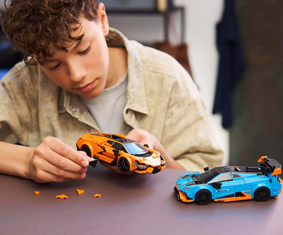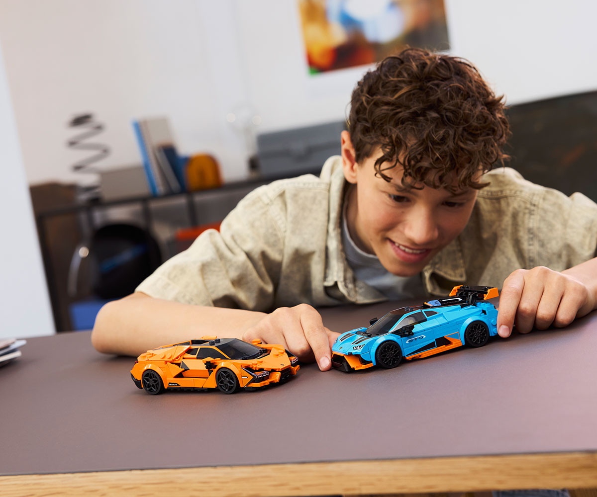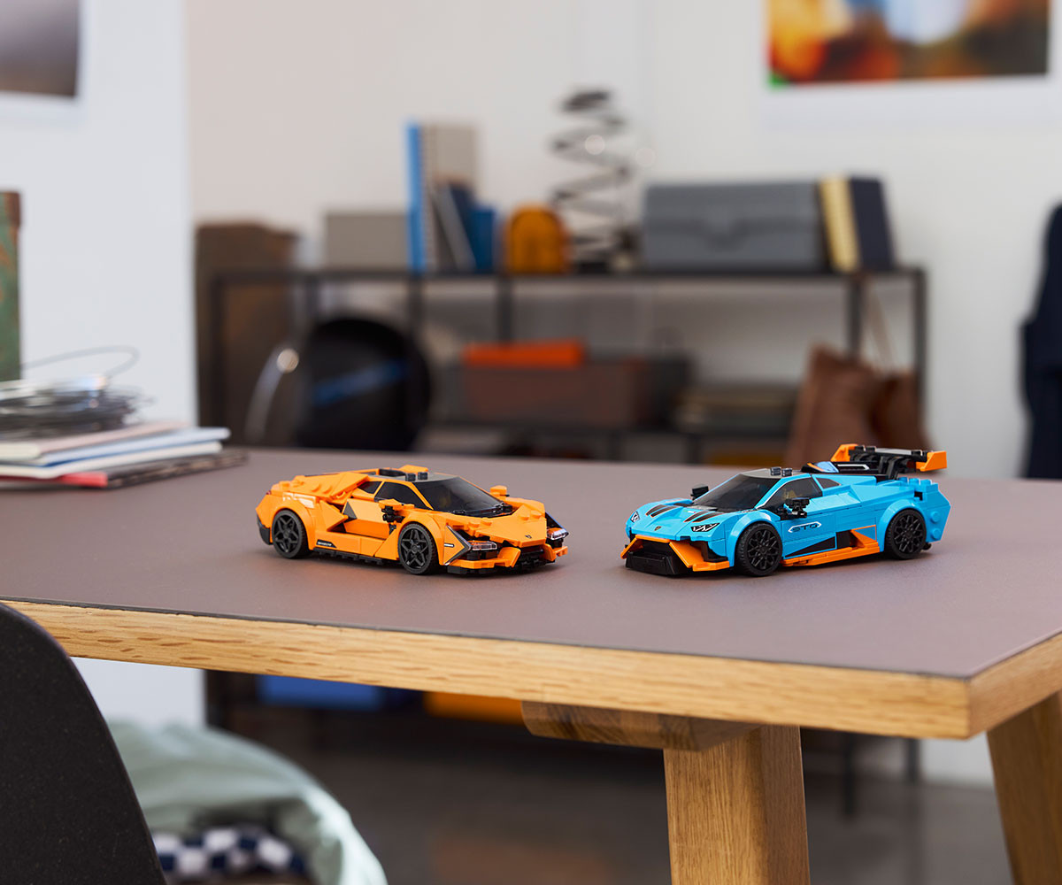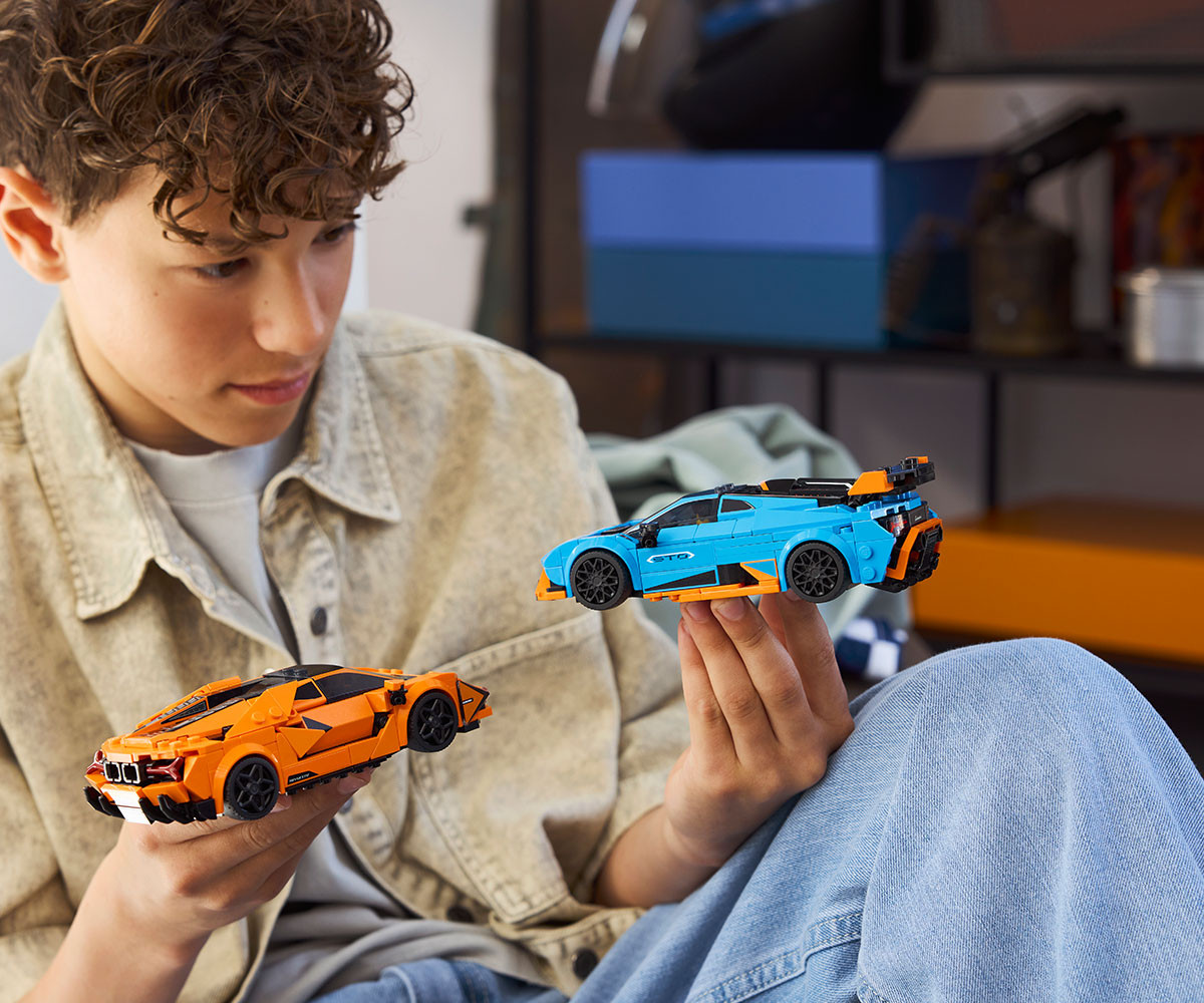 С двойния пакет LEGO® Speed Champions Lamborghini децата колекционират, строят, играят и показват моделите Revuelto и Huracán STO с 2 минифигури.