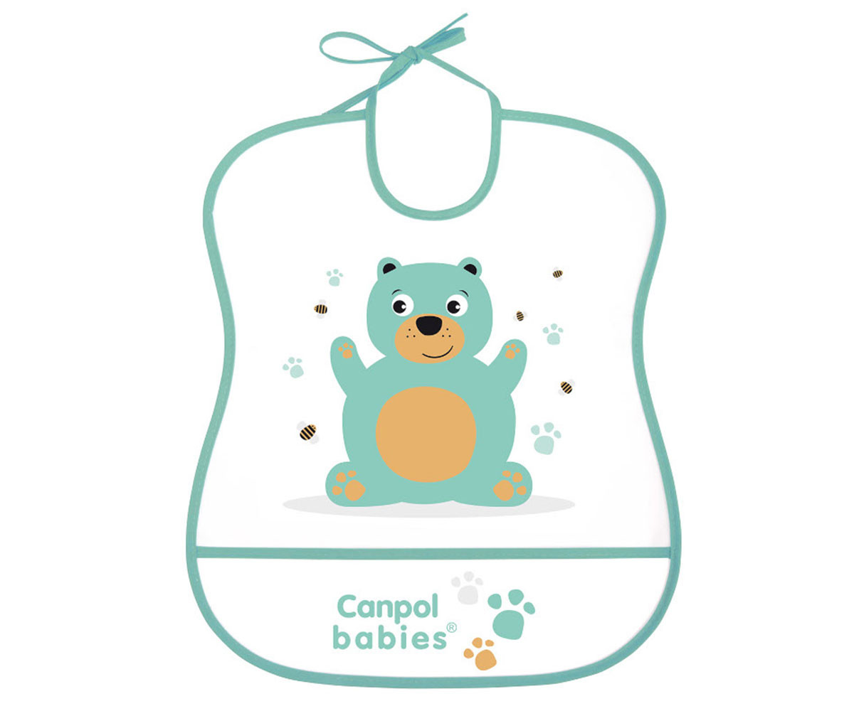 Мек практичен лигавник. В джобчето се събира падащата от устата на детето храна. Лесен за почистване. Мек практичен лигавник, който ефективно предпазва дрехите на детето от замърсяване. Оборудван с голям джоб, който събира всички хранителни остатъци. Лесен за почостване. Просто измийте с топла вода и детски сапун след хранене. Предлага се в няколко различни цвята.