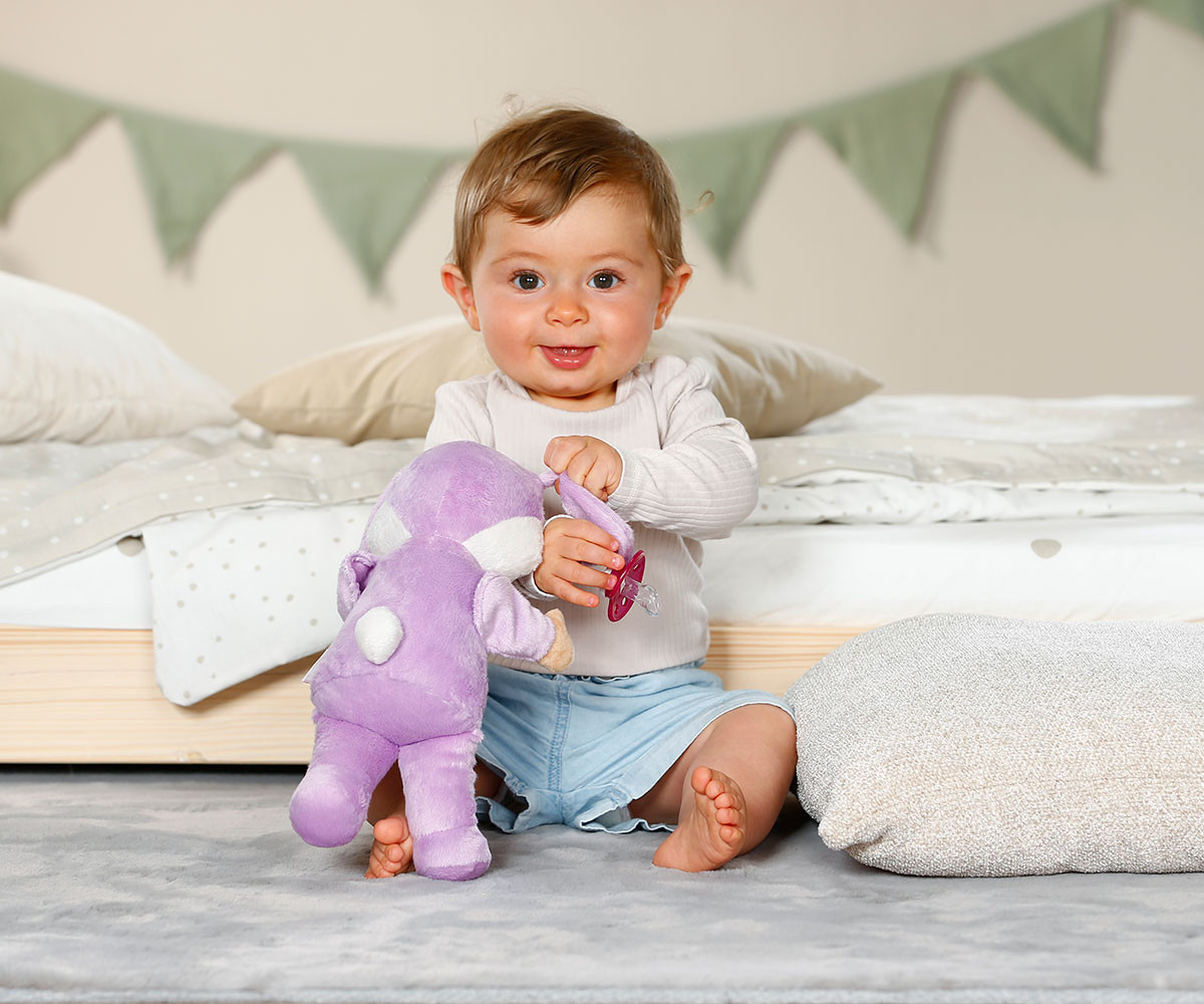 - Меко зайче с височина 26 см, създадено за бебета и малки деца;