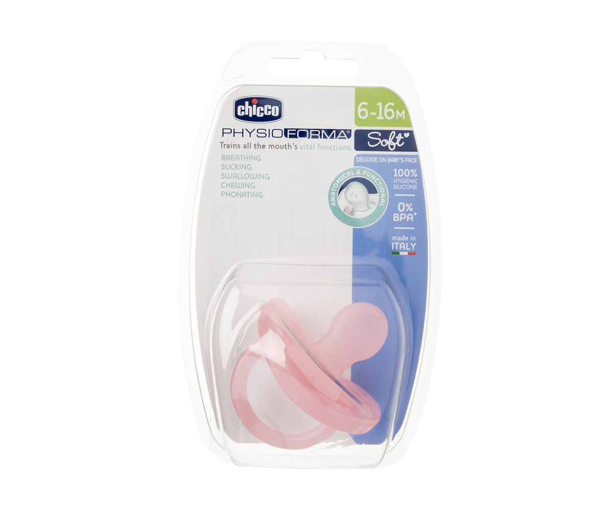 Chicco - Силиконова залъгалка Physio Soft, 6-16м, розова
