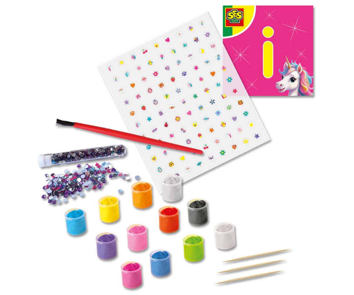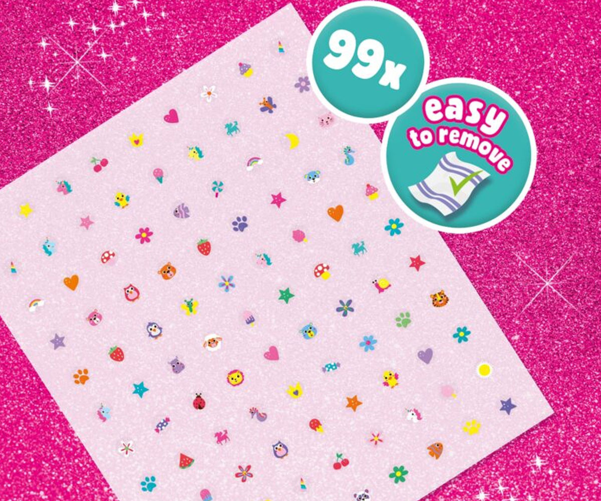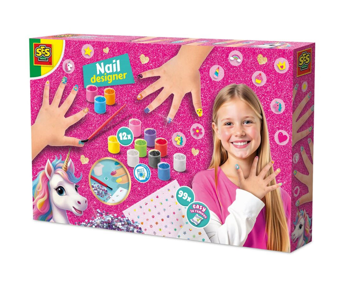 Украсяването на нокти никога не е било толкова забавно – с комплекта „Еднорози – Дизайнер на маникюр“! Водоустойчивите лакове на водна основа са напълно безопасни за деца и щадящи околната среда – лесно се измиват и изглеждат страхотно! С 99 лепенки и цветни диамантени камъчета, децата могат да създадат безброй красиви и креативни дизайни. Смесвайте цветове, декорирайте заедно с приятели и превърнете времето за маникюр в истинско празнично забавление!