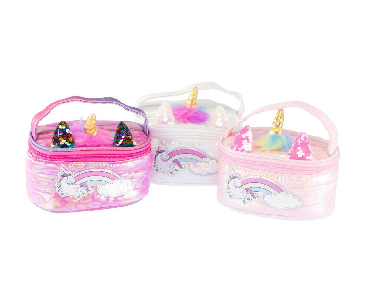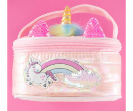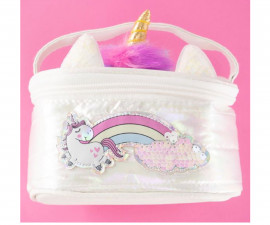 Малък и сладък несесер с цип с тема еднорог. Удобен и идеален за пътувания, разходки и ежедневна употреба. Лесен за пренасяне благодарение на практичната дръжка в същия цвят.