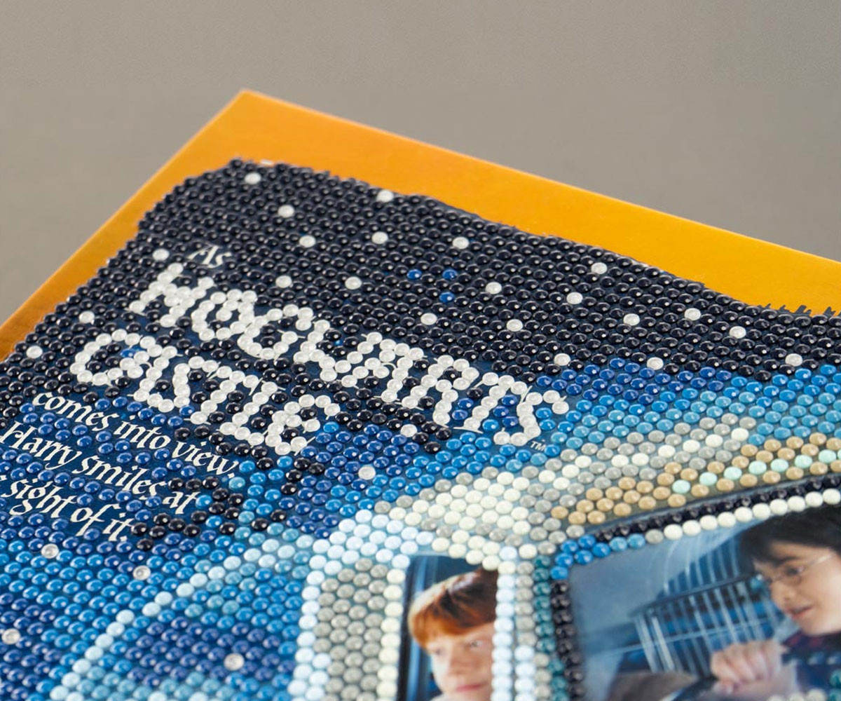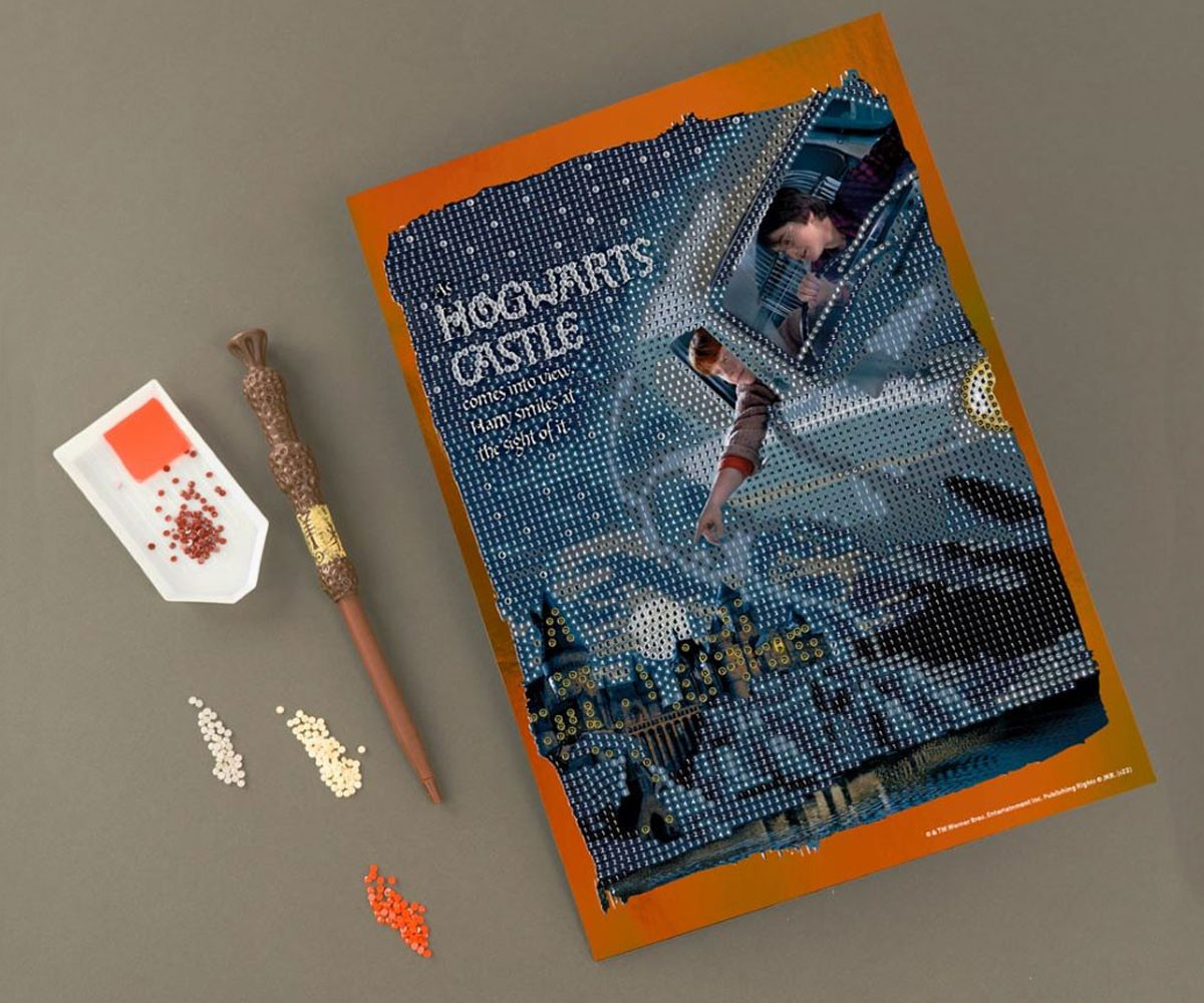 Творчески комплект за създаване на релефни мозайки с цветни камъчета, който ще ви потопи в магическия свят на Хогуортс и Хари Потър. Множество готови изображения, които можете да декорирате и да добавите към своята колекция, вдъхновена от сагата за Хари.