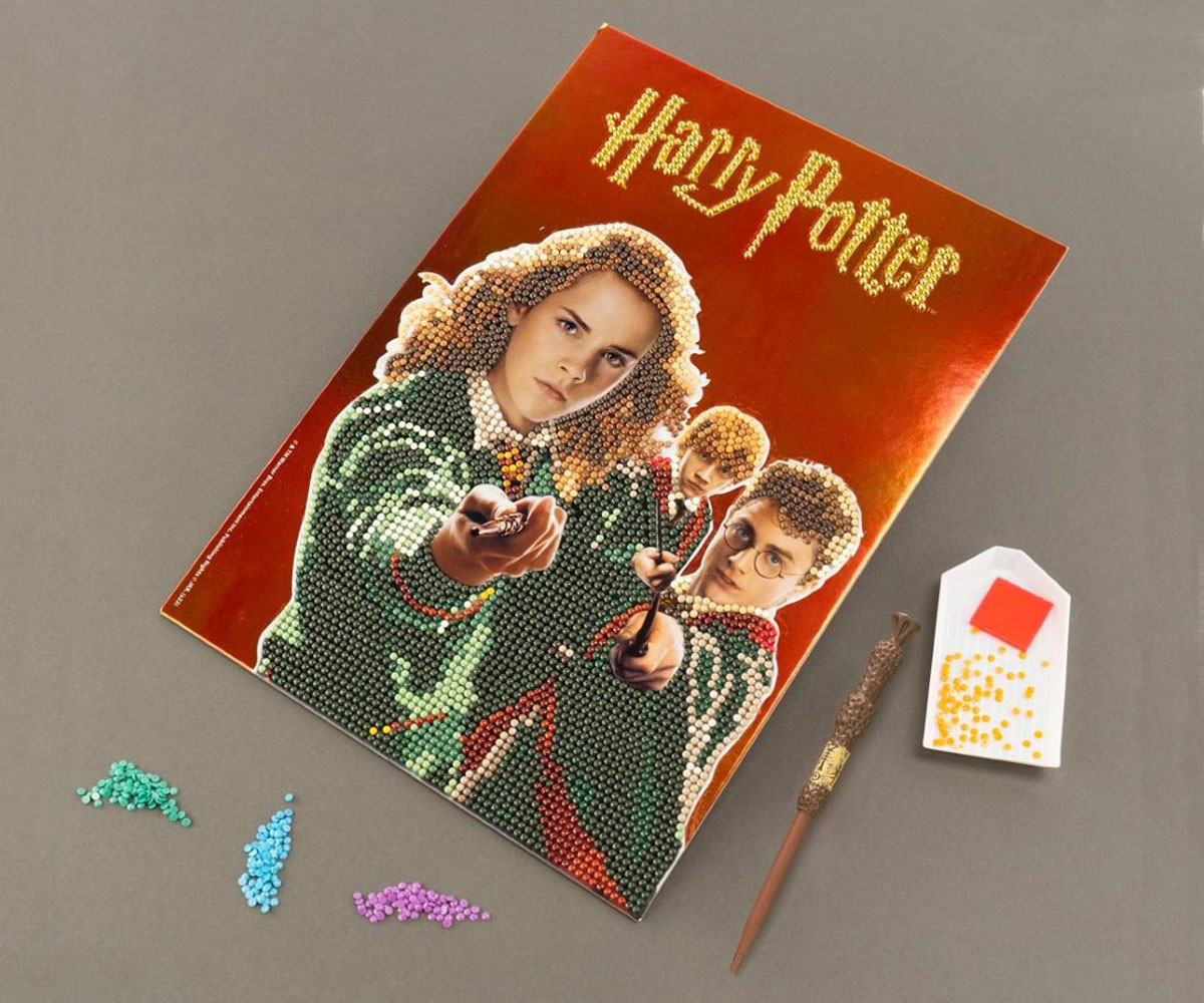 Творчески комплект за създаване на релефни мозайки с цветни камъчета, който ще ви потопи в магическия свят на Хогуортс и Хари Потър. Множество готови изображения, които можете да декорирате и да добавите към своята колекция, вдъхновена от сагата за Хари.