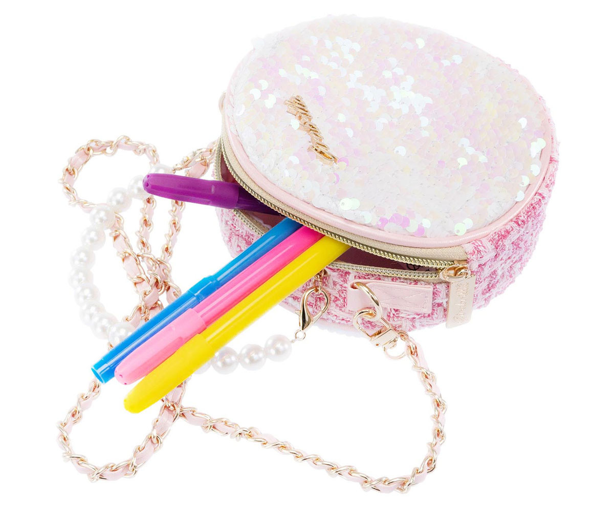 Nice - Чантичка с пайети, кръгла тип клъч с цип