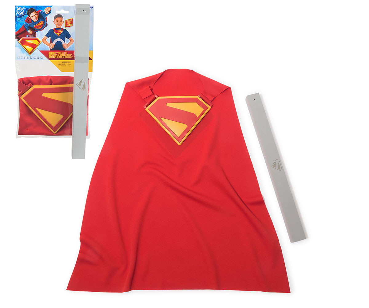 Влезте във вселената на DC Comics с комплекта SUPERMAN наметало за деца! Този изпълнен с екшън комплект включва пелерина и огъваща се стоманена пръчка, с която децата могат да демонстрират „свръхсила“ и да впечатлят приятелите си. Създаден за Хелоуин, игри с преобличане и въображаема игра, този костюм стимулира креативността и самоувереността. Децата могат да се борят със злодеи, да спасяват деня и да пресъздават най-емблематичните приключения на Супермен. Перфектен за малки фенове на екшъна, този костюм насърчава разказването на истории и работата в екип, докато вдъхва живот на легендарния герой. Независимо дали става въпрос за рожден ден, празник или просто забавен ден, комплектът SUPERMAN наметало е перфектният подарък за малките герои на възраст 4+ години. Нека приключенията започнат още днес!