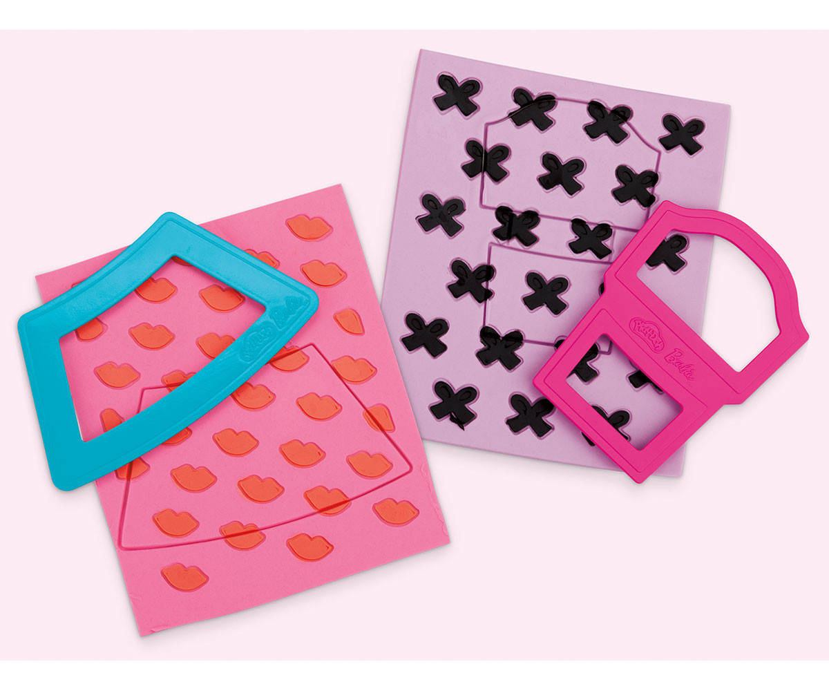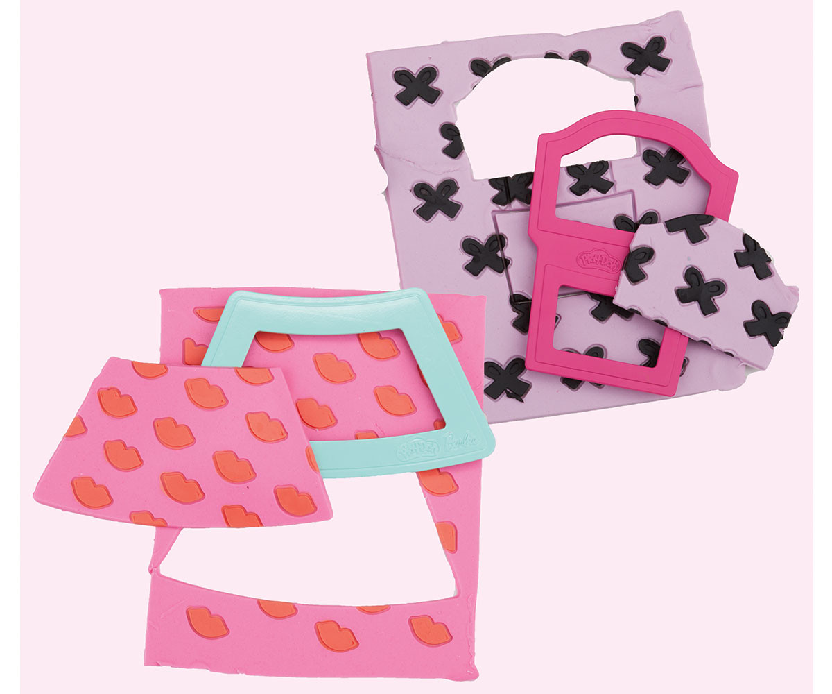 Специалните Play-Doh Pattern листове имитират материи с модерни дизайни като червила и панделки – изглеждат почти като истински плат!