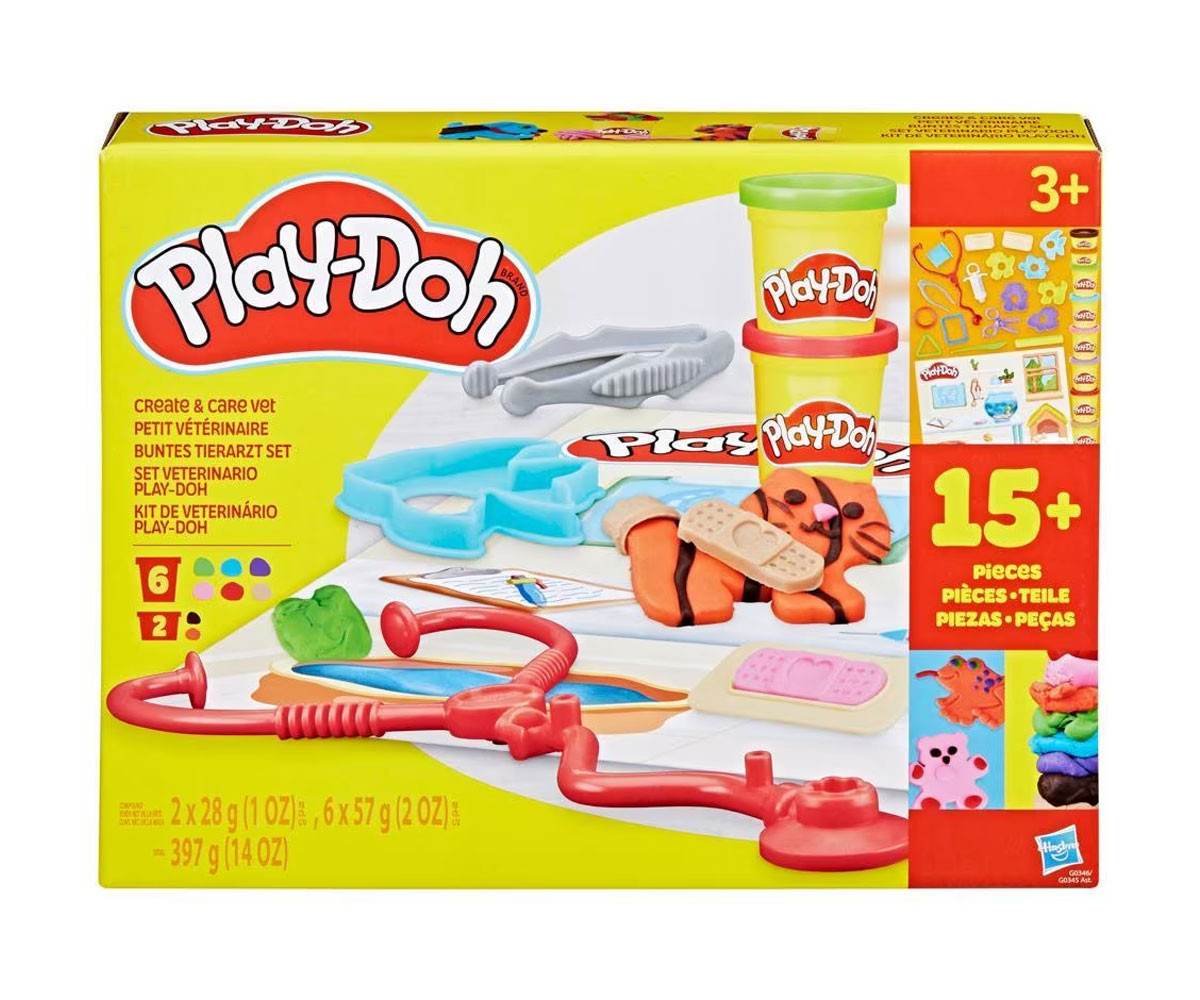 Комплектът за игра "Създай и се грижи за животните" има всичко, от което децата се нуждаят, за да играят на ветеринар! Направете цветни животни с 6 форми, направете преглед със стетоскопа, навийте бинтове и още. Този комплект Play-Doh включва 18 забавни инструмента, 8 кутийки Play-Doh пластилин и поставка за игра с изглед към ветеринарния кабинет, която прави почистването по-лесно. Този комплект за изкуства и занаяти е чудесен подарък за деца на 3 години и нагоре.