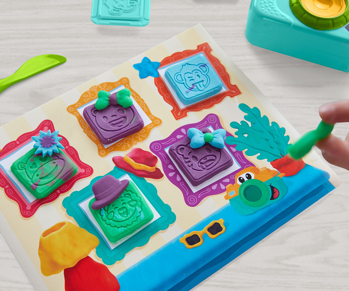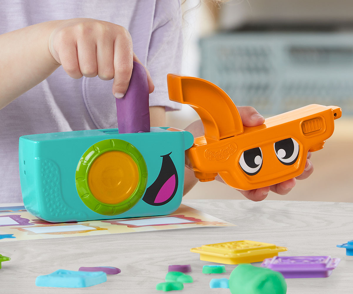 - Забавно е да създаваш животни и да изследваш емоции с тактилни сензорни играчки като този комплект с камера от Play-Doh;