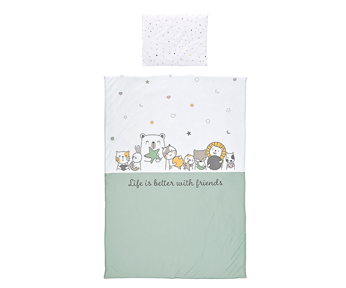 - Име: Lorelli - Бебешки спален комплект от 3 части Ранфорс, Happy Friends минт