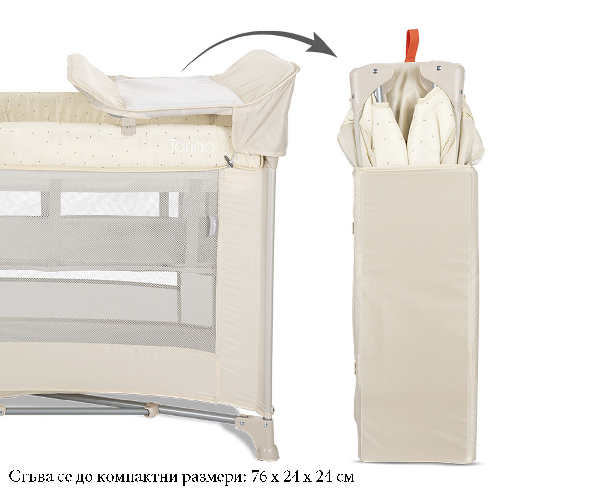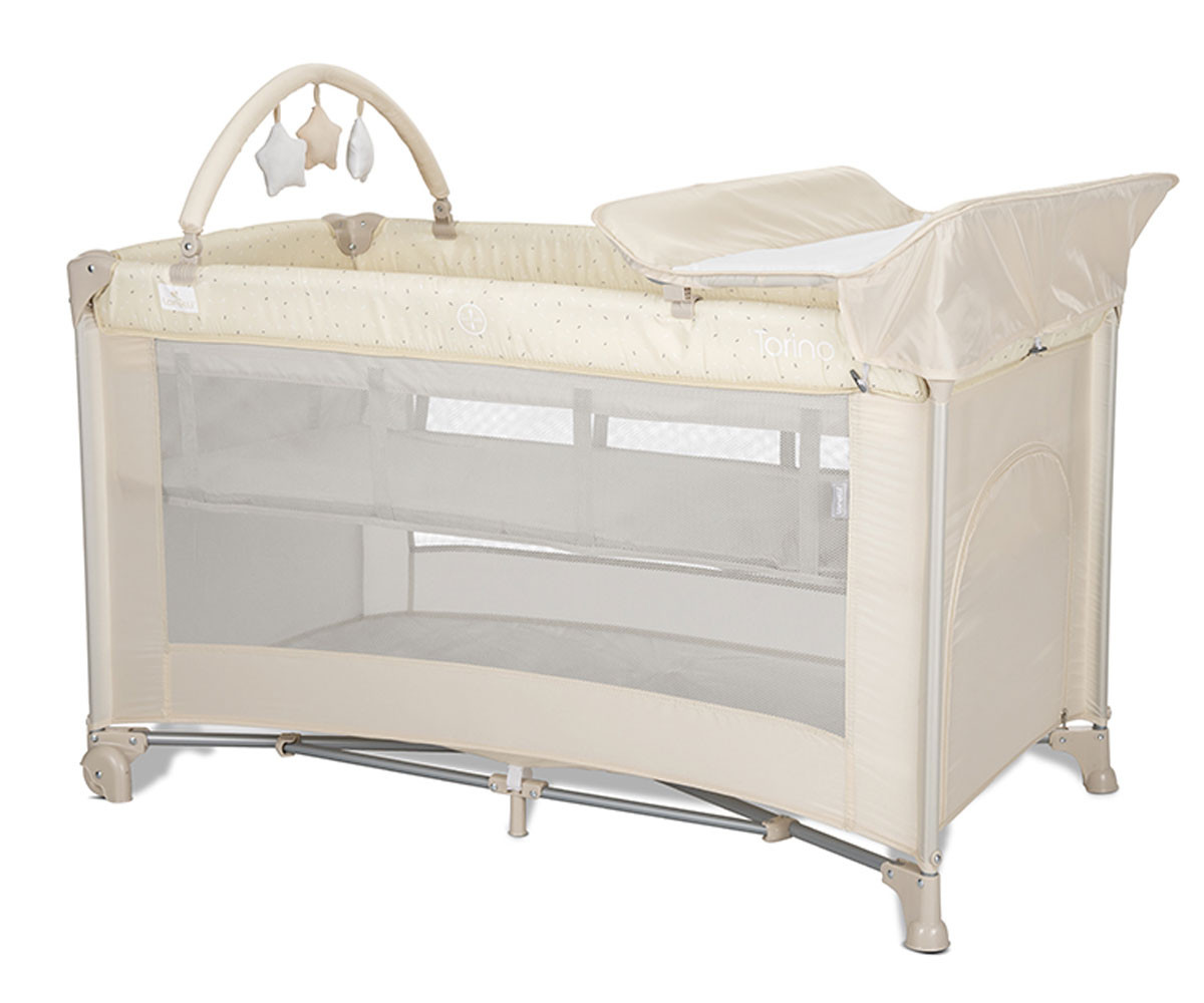 Lorelli - Преносима бебешка кошара на 2 нива за спане и игра Torino Plus, beige