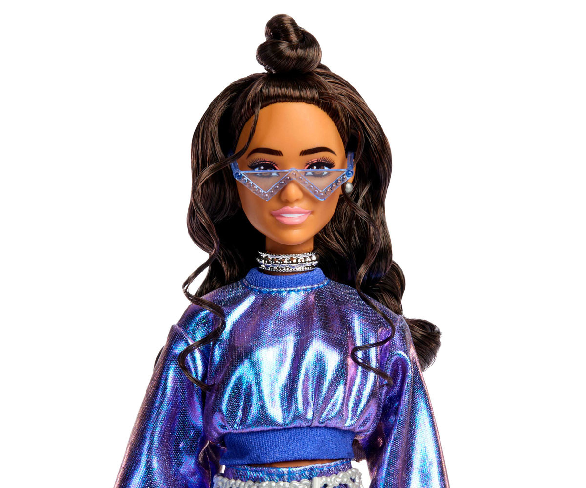 - Куклата Barbie е с аксесоари като очила със сини стъкла, кристална чантичка и сребристи боти. Сгъваемите ѝ стави ѝ позволяват да заема всякакви пози!