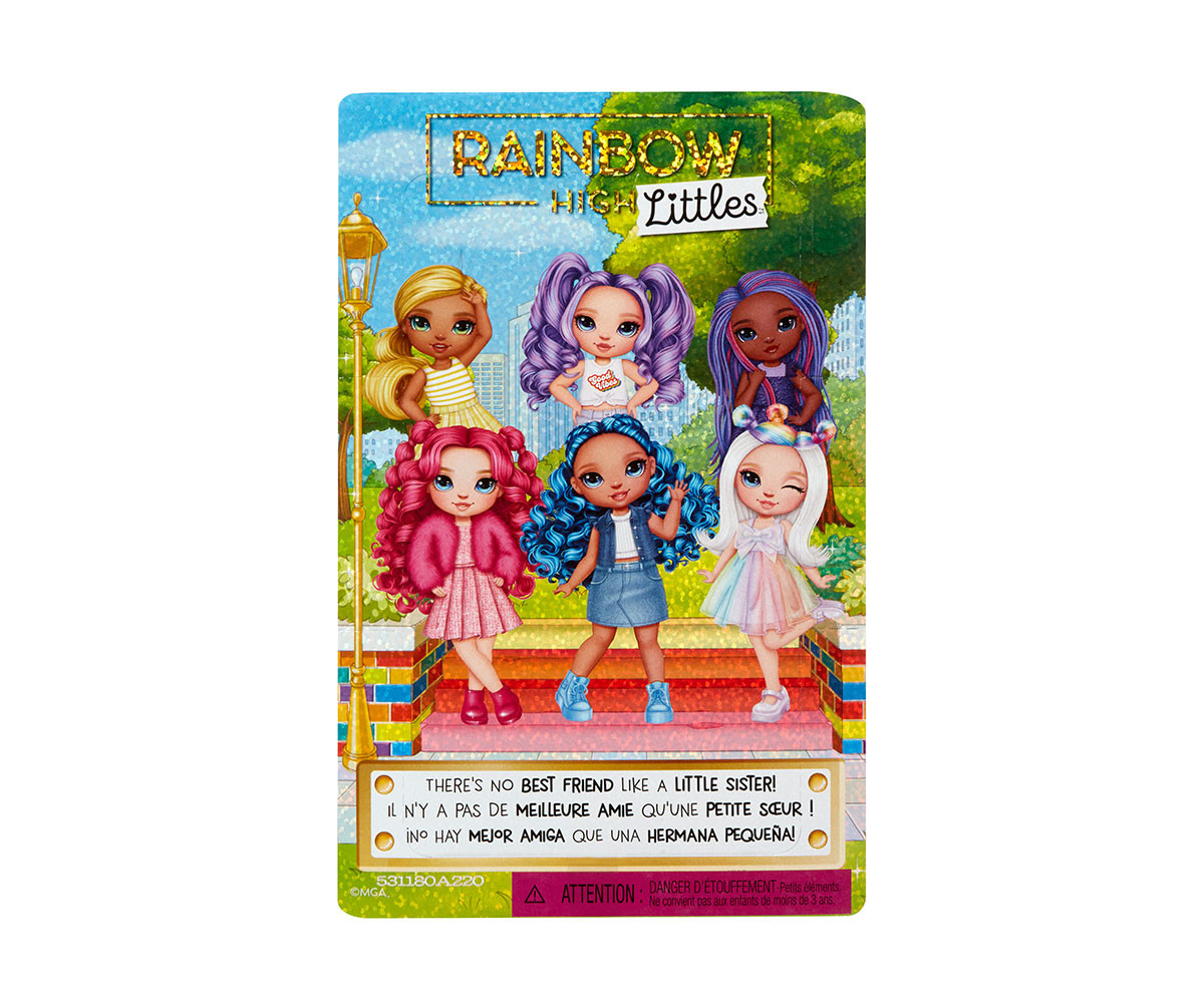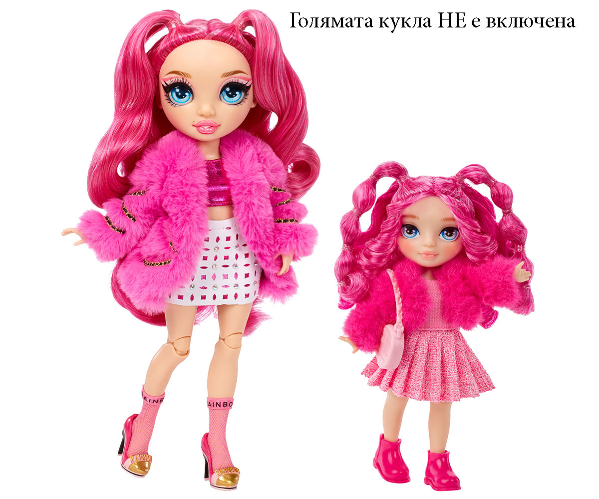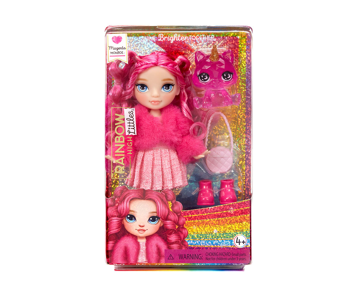 Няма по-добър приятел от малката сестра! Представяме Rainbow High Littles – малките сестри на любимите ви кукли Rainbow High. Можете да създавате истории с малките сестри на любимите си кукли! Представяме ви малката сестра на Стела Мънроу – Магента. Магента обожава да бъде със своя идол (и по-голяма сестра) Стела. Тя е готова да направи всичко, за да я накара да се усмихне.Магента Мънроу има свой уникален стил. Тя носи розова рокля с пола и топ, плюс меко кожено якенце от изкуствена кожа, подходящи розови обувки и чанта.