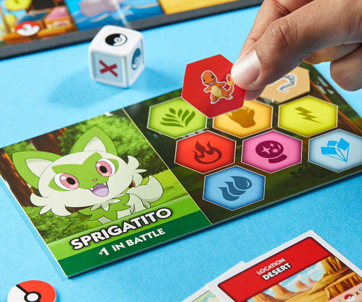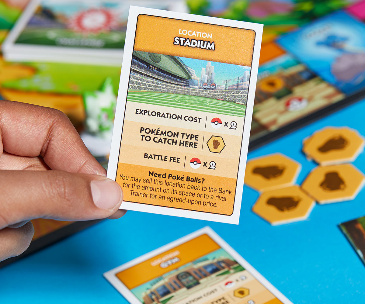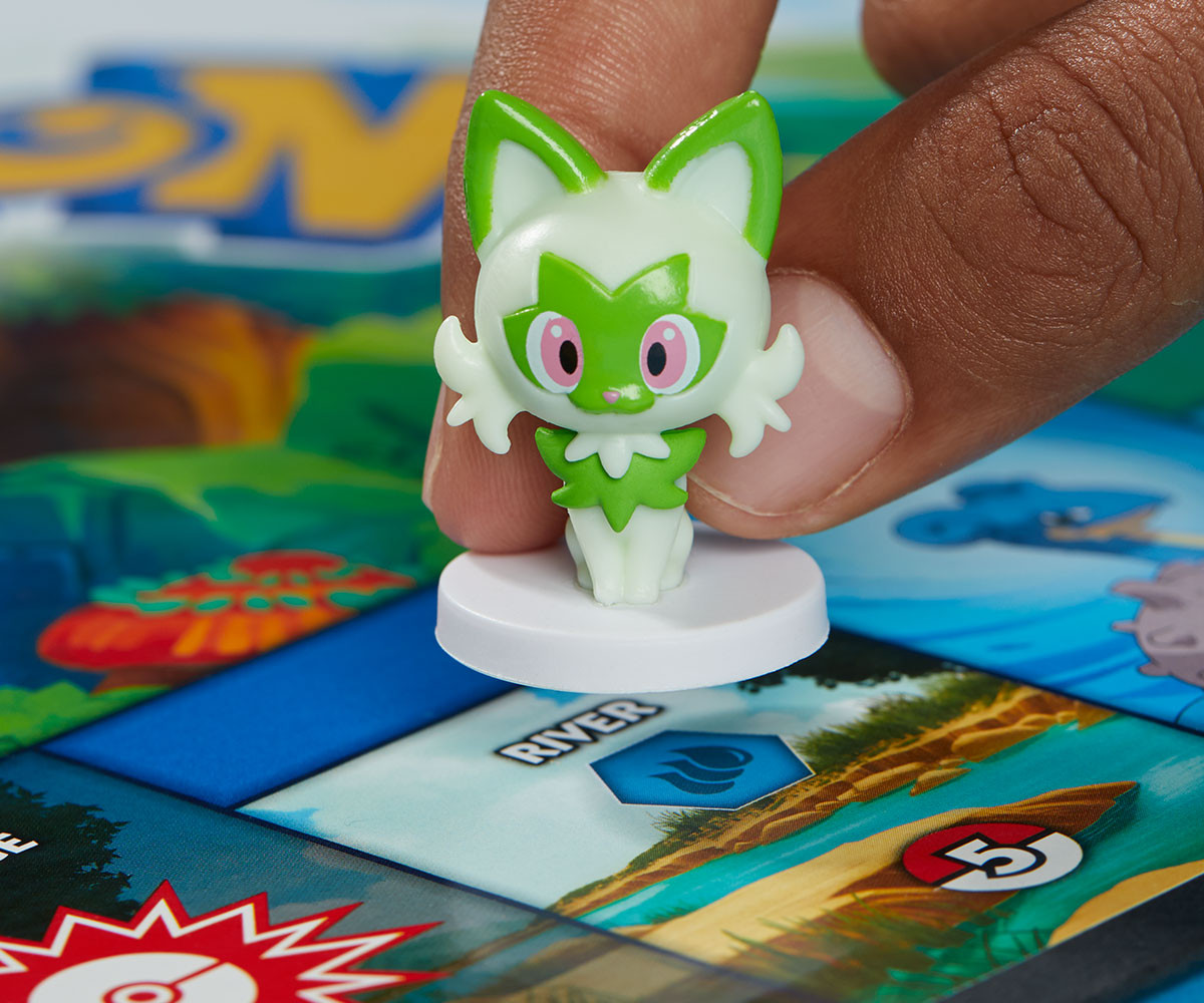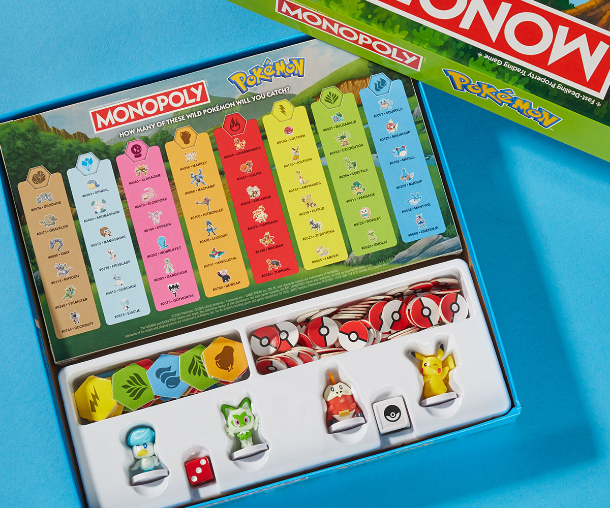 Стани най-бързият в надпреварата за диви покемони! Monopoly Pokémon Edition комбинира класическия геймплей на Монополи с вълнуващо ловене на покемони. Играй като покемон треньор, който пътува из обширна земя със своя покемон партньор. В тази забавна игра за деца, имотите са цветни локации, а парите са заменени с Поке Топки. Играчите изследват различни места, улавят различни видове диви покемони, които добавят към своя тракер мат, и се изправят в битки срещу съперници, за да събират още Поке Топки. Стани първият треньор, който попълни своя тракер мат, или остани последният с Поке Топки, за да спечелиш! Тази покемон версия на Монополи е страхотна настолна игра за семейни вечери с игри и чудесен подарък за момчета, момичета и деца над 8 години, които обичат покемони и Монополи.
