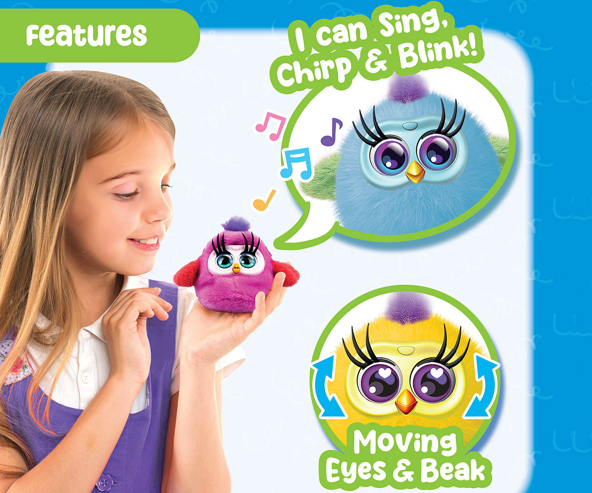 MINI FLUFF е интерактивно птичe–домашен любимец с батерии. Играй с FLUFF, като го погалиш отстрани или натиснеш главичката му, за да активираш забавни звукови ефекти. Очичките на MINI FLUFF ще започнат да мигат в отговор на твоя допир. Можеш също да пляскаш с ръце, за да предизвикаш реакции, или да духнеш въздух в личицето му, за да видиш колко сладко ще реагира! MINI FLUFF може да се свързва и с други от серията, за да пеят заедно като хор. Налични са 6 различни цвята и стила, които можеш да събираш. Препоръчителна възраст: 3+ години.