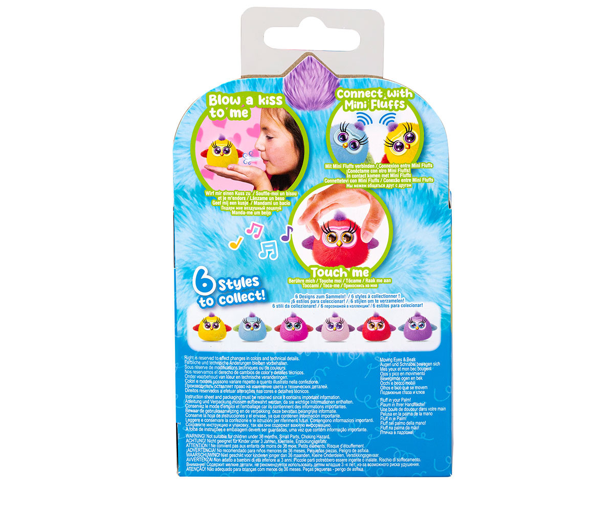 MINI FLUFF е интерактивно птичe–домашен любимец с батерии. Играй с FLUFF, като го погалиш отстрани или натиснеш главичката му, за да активираш забавни звукови ефекти. Очичките на MINI FLUFF ще започнат да мигат в отговор на твоя допир. Можеш също да пляскаш с ръце, за да предизвикаш реакции, или да духнеш въздух в личицето му, за да видиш колко сладко ще реагира! MINI FLUFF може да се свързва и с други от серията, за да пеят заедно като хор. Налични са 6 различни цвята и стила, които можеш да събираш. Препоръчителна възраст: 3+ години.
