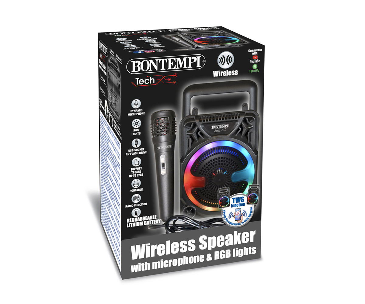 - Name: Bontempi 49 1000 - Mini Wireless speaker with microphone and light effects