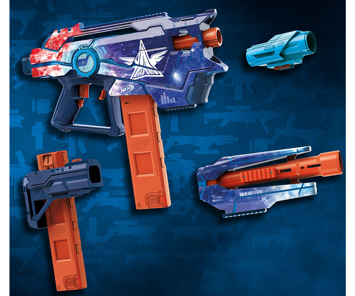 - Модули за персонализация – включва мерник, приклад с място за пълнител и цевна приставка. Всички части са съвместими и с останалите бластери от серията Loadout;