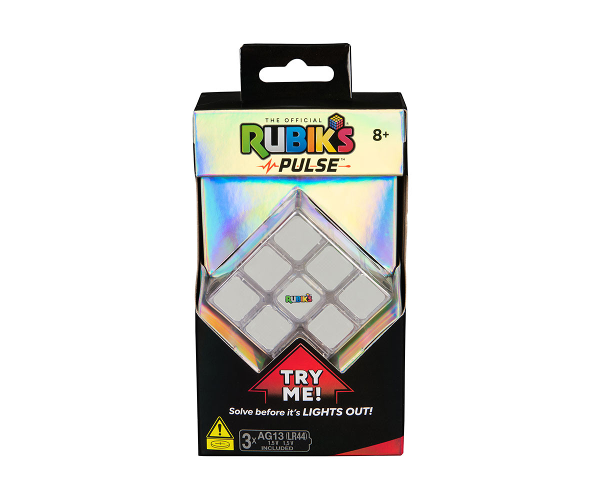 Реши го навреме… или светлините угасват! Запознай се с Rubik’s Pulse Cube! Приготви се за най-напрегнатото и вълнуващо предизвикателство в света на Куба на Рубик! Пулсиращото кубче е създадено за бързи мислители и ловки ръце — имаш само 60 секунди, за да го решиш, преди светлината да изгасне! Започни, като разбъркаш куба, след което натисни логото, за да активираш светлината вътре, която разкрива цветовете му. С всяка изминала секунда пулсиращата светлина става по-интензивна, докато накрая... всичко потъне в тъмнина! Натисни логото отново, за да добавиш още време, или задръж бутона, за да рестартираш нов кръг и да се пробваш пак. Това е пъзел на високо ниво, който ще тества рефлексите, логиката и концентрацията ти. Опитай се да подобриш собственото си време, докато се състезаваш със светлината!