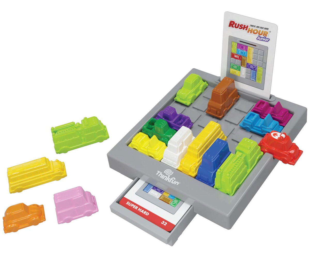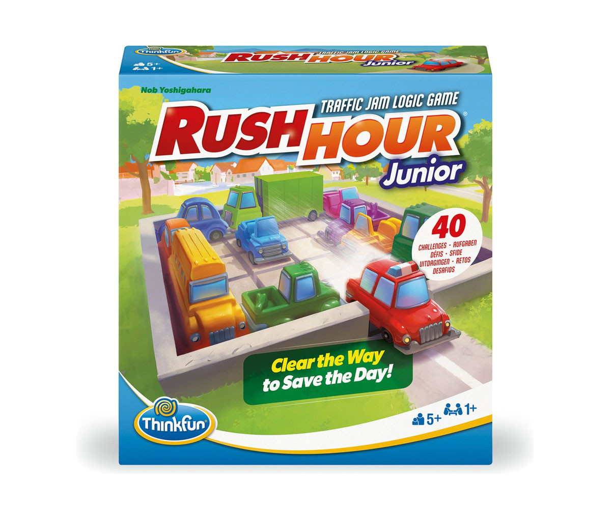 С 40 предизвикателства от лесно до експертно ниво, Rush Hour Jr е зарадвал и ангажирал деца и възрастни с логически пъзели, които развиват мисленето далеч от екраните. Премествайте колите, за да освободите Червената кола на Пожарния началник от задръстването! Разкрийте потенциала на вашето дете с Rush Hour от ThinkFun – динамичната игра за размисъл, която държи и деца, и възрастни увлечени с часове безкрайно забавление! Вече повече от 30 години ThinkFun Inc. се посвещава на създаването на игри, които събуждат любопитството, изграждат увереност и развиват децата за цял живот. Игри, които насърчават интереса към Науката, Технологиите, Инженерството и Математиката (STEM), като същевременно генерират вълнение за свят на учене чрез игра. Иновации, креативност, стойност и забавление – това са четирите елемента, които формират развитието на всяка игра.
