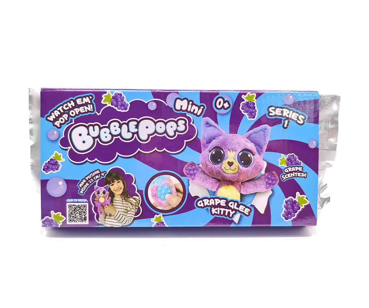 Bubblepops – Малки на вид, но пълни с големи изненади! 12 различни, очарователни плюшени играчки с височина: 20 см. Bubblepops не са просто играчки – те са магически, ароматни приятелчета, които ще пленят сърцето на всяко дете! Създадени с внимание към сетивата, те преминават от плоска форма, напомняща дъвка на лента, до пухкаво плюшено животинче, готово за гушкане.