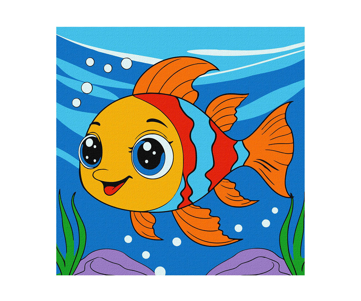 - Име: Ideyka - Комплект рисуване по номера с акрилни бои върху платно на подрамка, Риба, 25 х 25 см