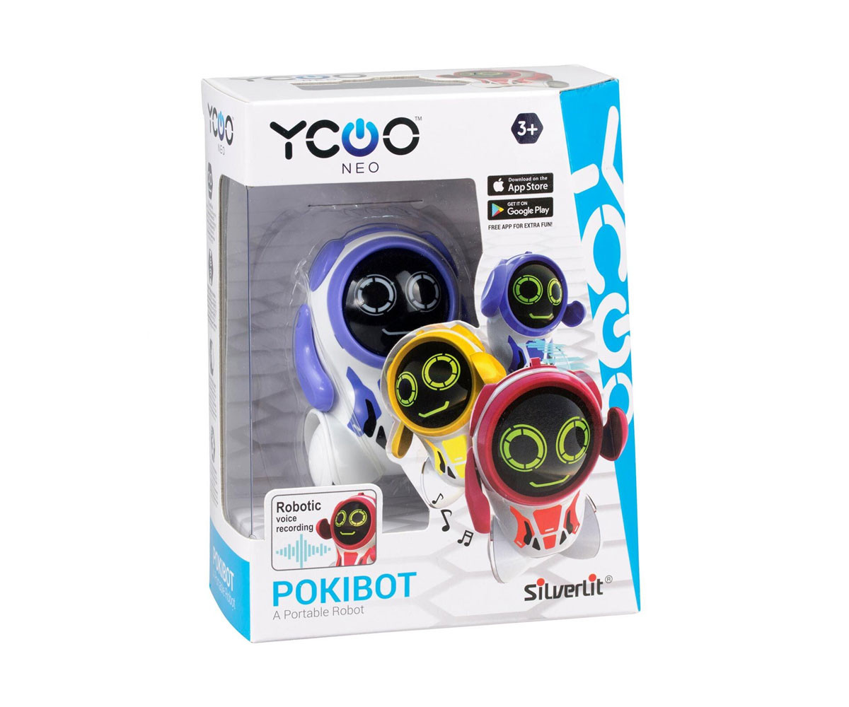 Електронен робот с повече от шест функции, наличен в два стила и шест цвята. Благодарение на високотехнологичните си сензори, той е способен на възпроизвеждане на глас и различни движения. Разполага с безплатно мобилно приложение, взаимодейства с други роботи от своята категория и има светещо лице. Без значение какво търсите, сигурни сме, че ще откриете правилния продукт във вселената на роботите Silverlit. Пълна гама роботизирани играчки с обща цел: технологии за всички възрасти и интереси. Забавни, иновативни и интерактивни. С помощта на инфрачервени сензори и специални колела, роботът умело избягва препятствия, движейки се напред или завивайки, като при това издава забавни звуци. Покибот реагира на удари и е снабден със светлинни ефекти, които се изразяват чрез очите и усмивката му.