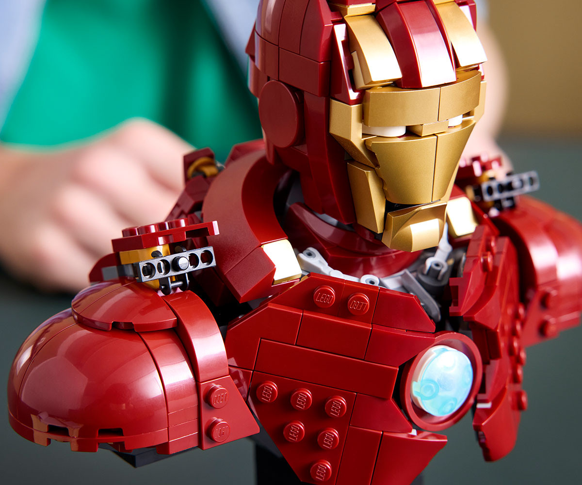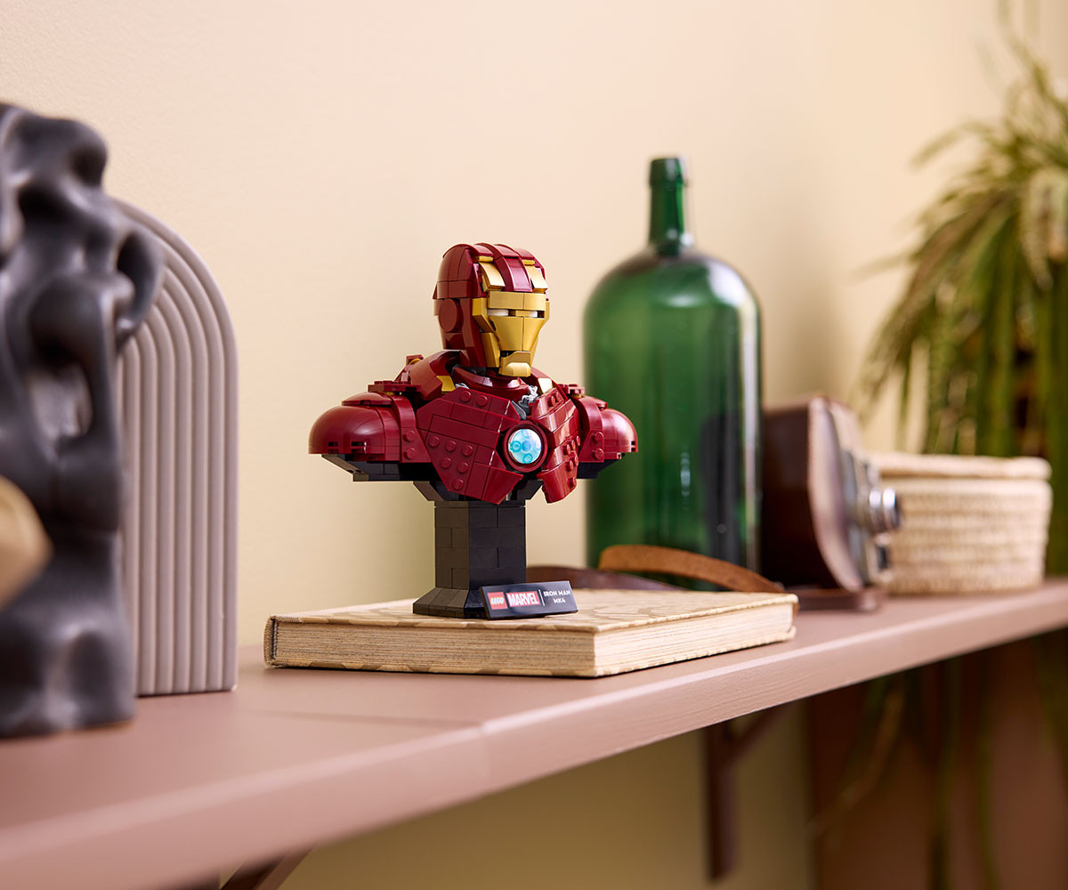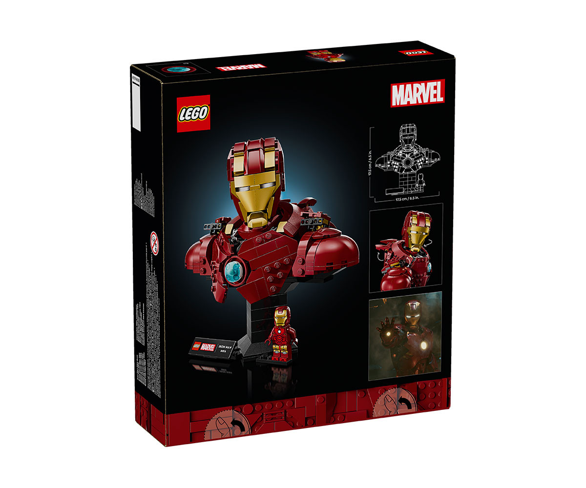 Колекционерският LEGO® ǀ Marvel Бюст на Железния човек MK4 е детайлен комплект за построяване и показване и запомнящ се подарък за възрастни фенове на супергерои.