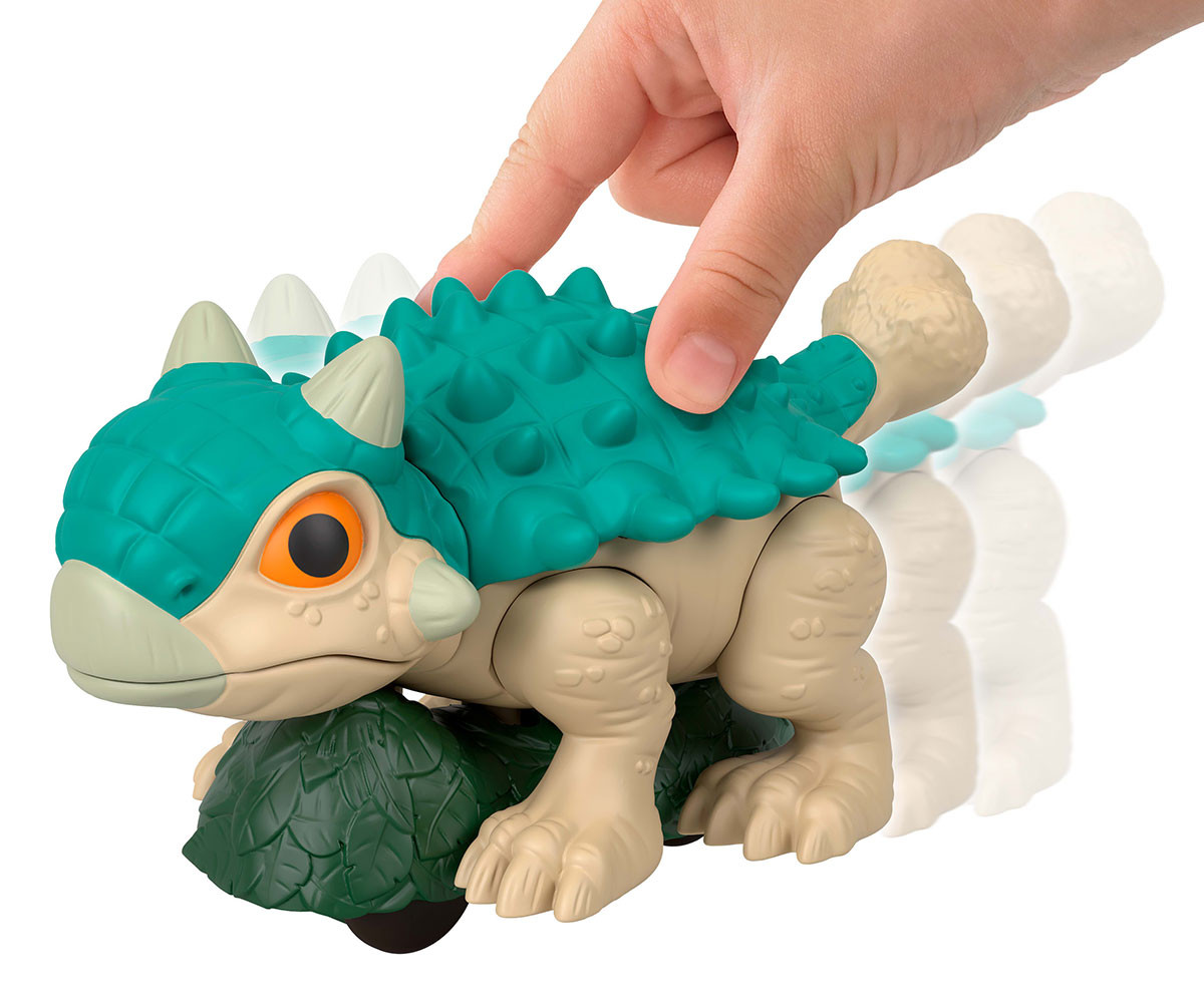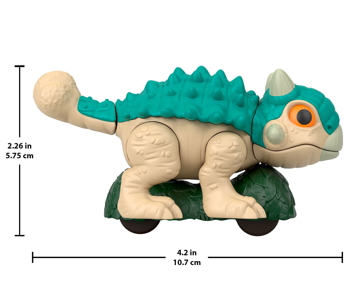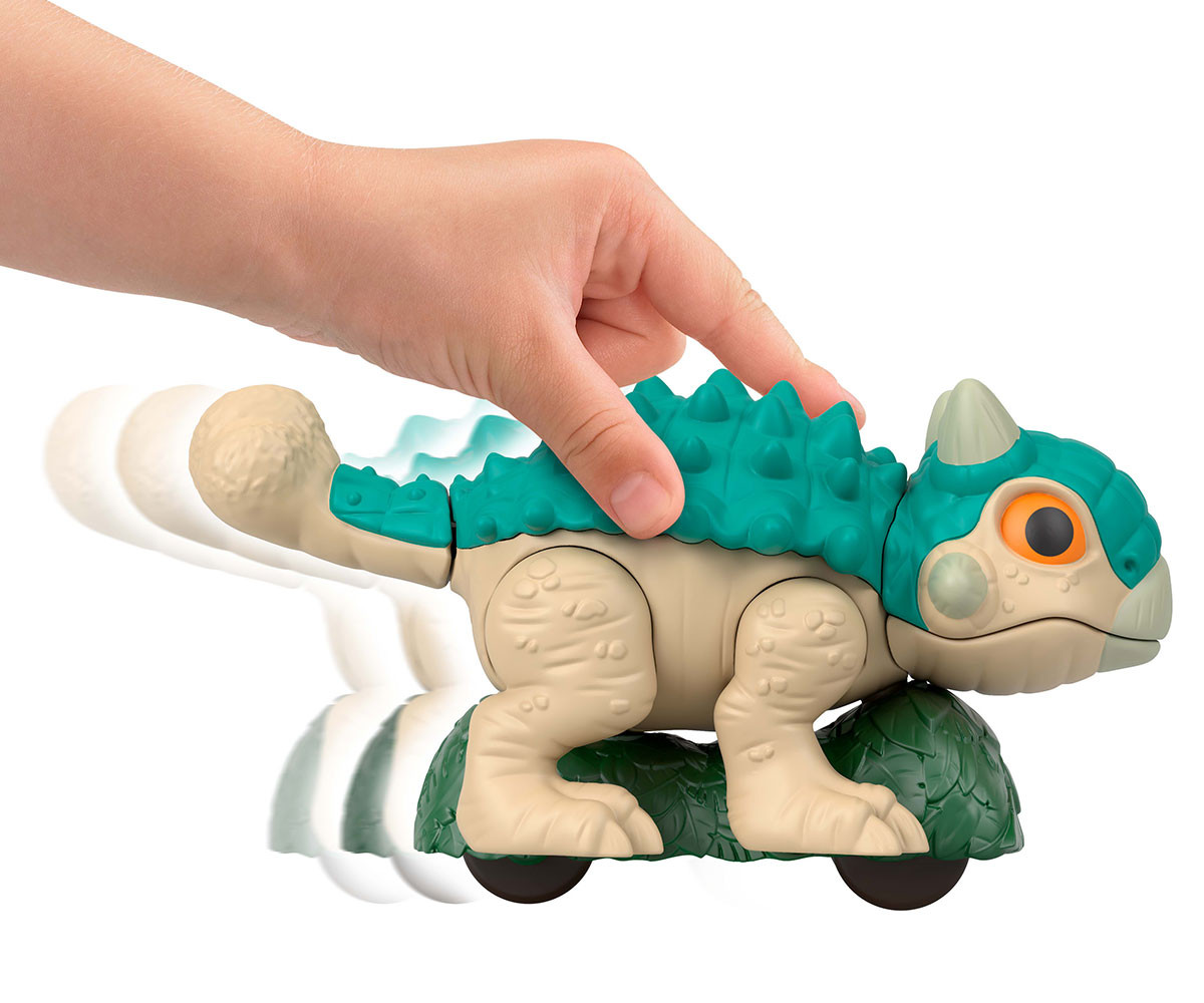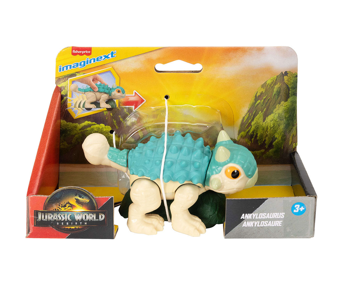 Малките фенове на Jurassic World ще зареват от вълнение с тези подвижни динозаври Imaginext от Fisher-Price! Динамичните динозаври са готови за приключения – с колелца и мърдащо движение. Високи около 10 см, те са идеални за малките ръчички и помагат на децата в предучилищна възраст да развият фини двигателни умения. Децата просто трябва да бутнат и раздвижат тялото на динозавъра, за да пресъздадат епични сцени от филма или да измислят собствени нови истории. Любителите на динозаври могат да изберат любимия си герой, вдъхновен от Jurassic World: Rebirth, или да съберат цялата колекция. Всеки се продава отделно, според наличността. Цветовете и декорациите може да варират.